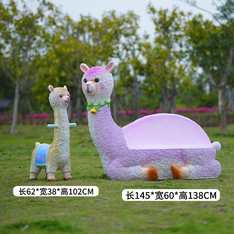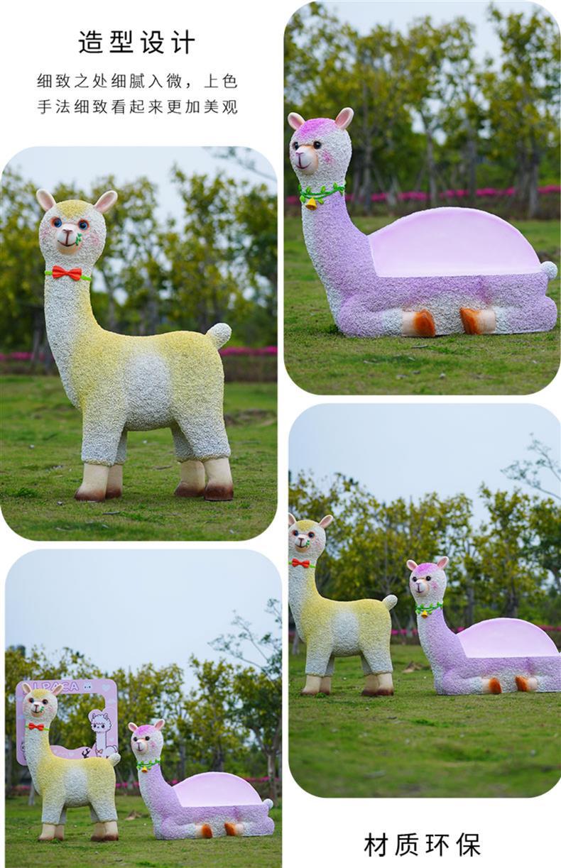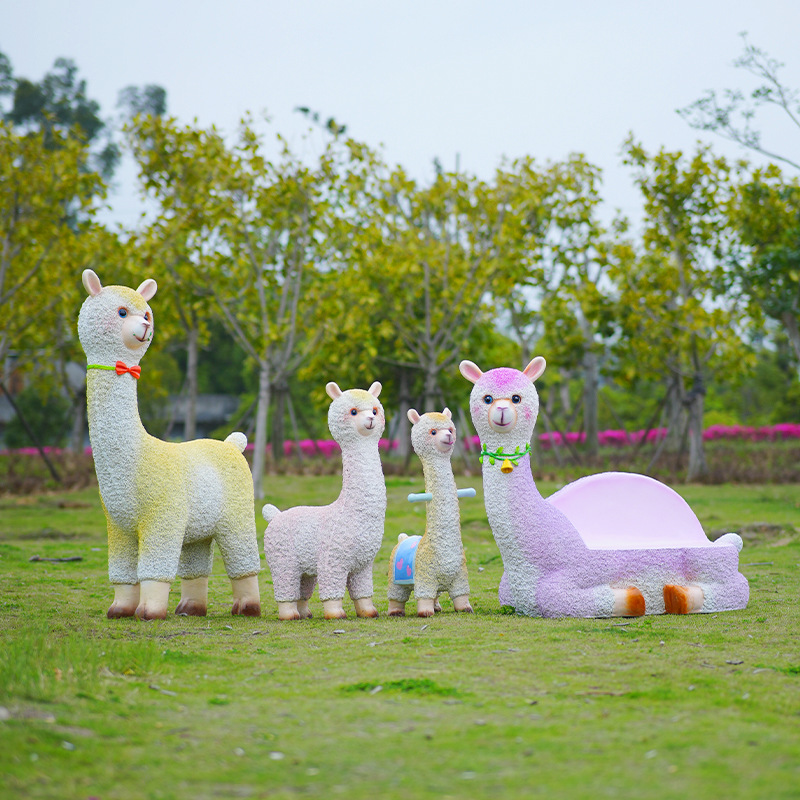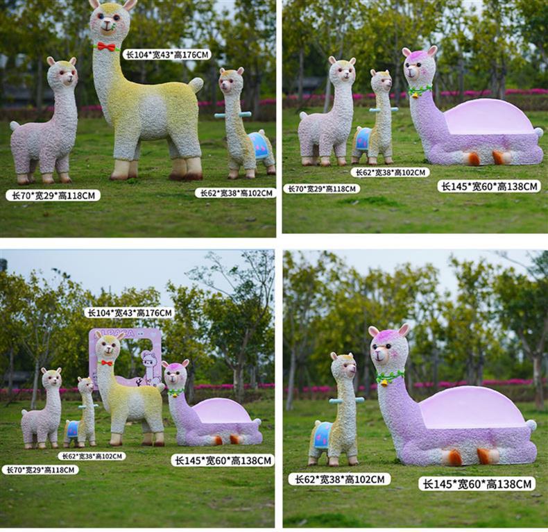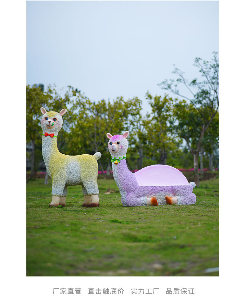 시뮬레이션 동물 좌석, 다채로운 풀 진흙 말, 알파카, 유리 섬유 장식품, 야외 공원 잔디 조각, 지역 장식