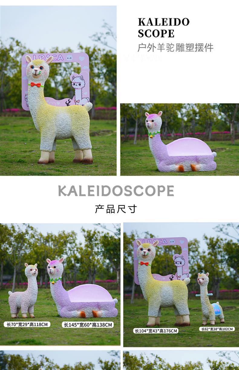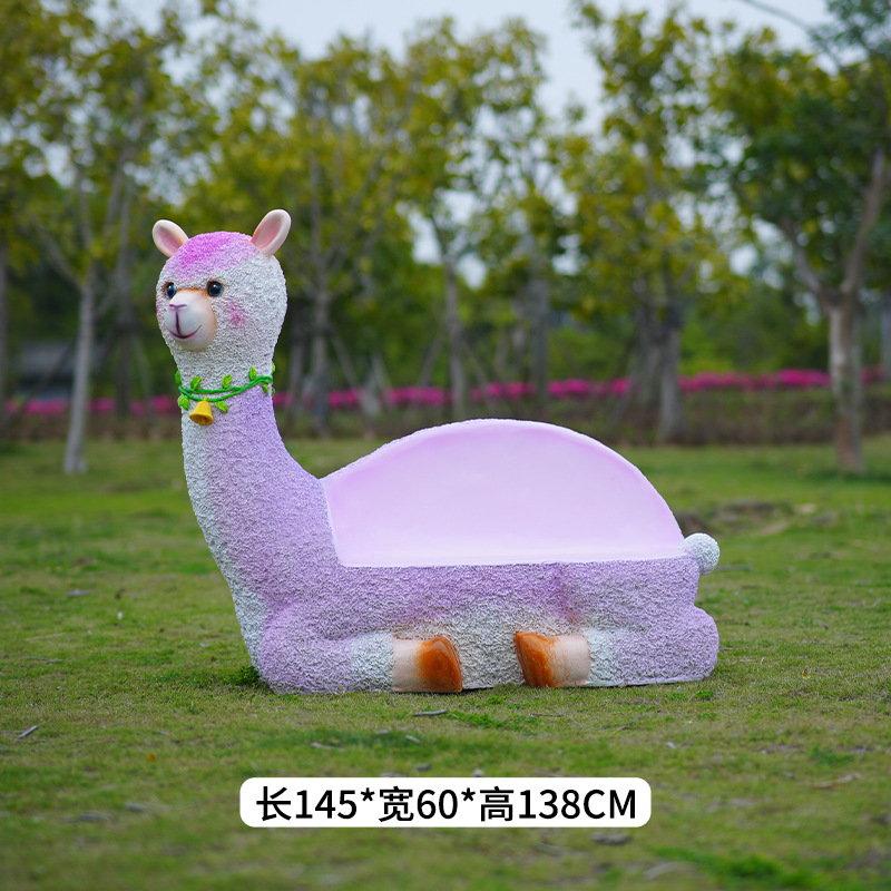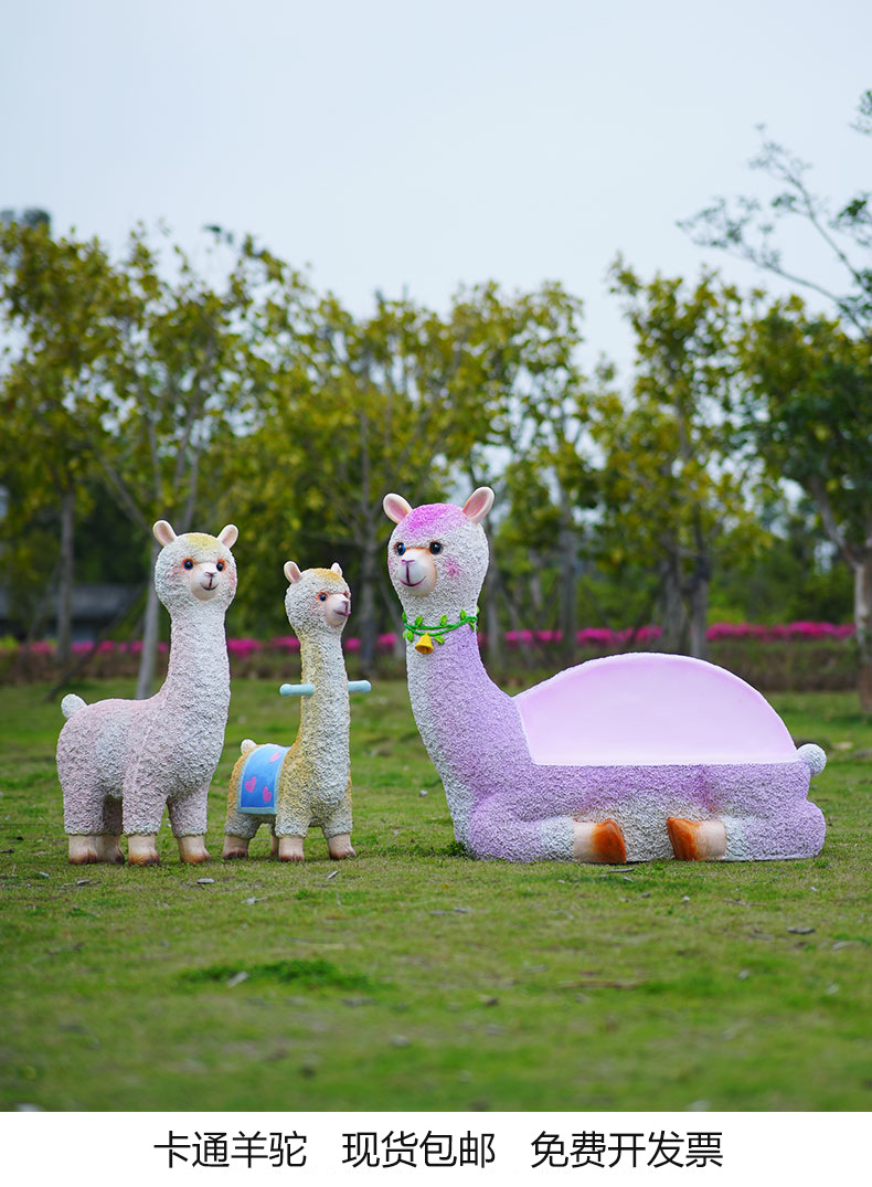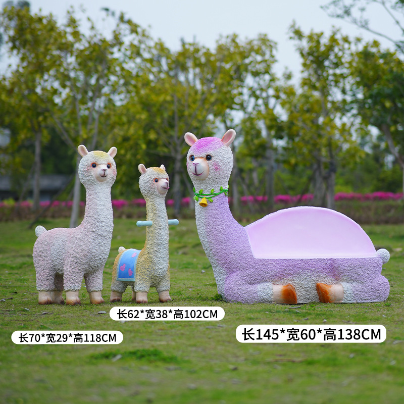 시뮬레이션 동물 좌석, 다채로운 풀 진흙 말, 알파카, 유리 섬유 장식품, 야외 공원 잔디 조각, 지역 장식