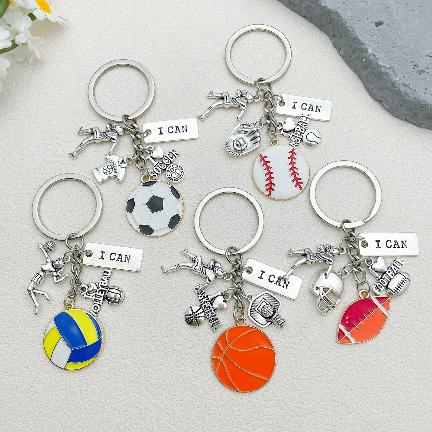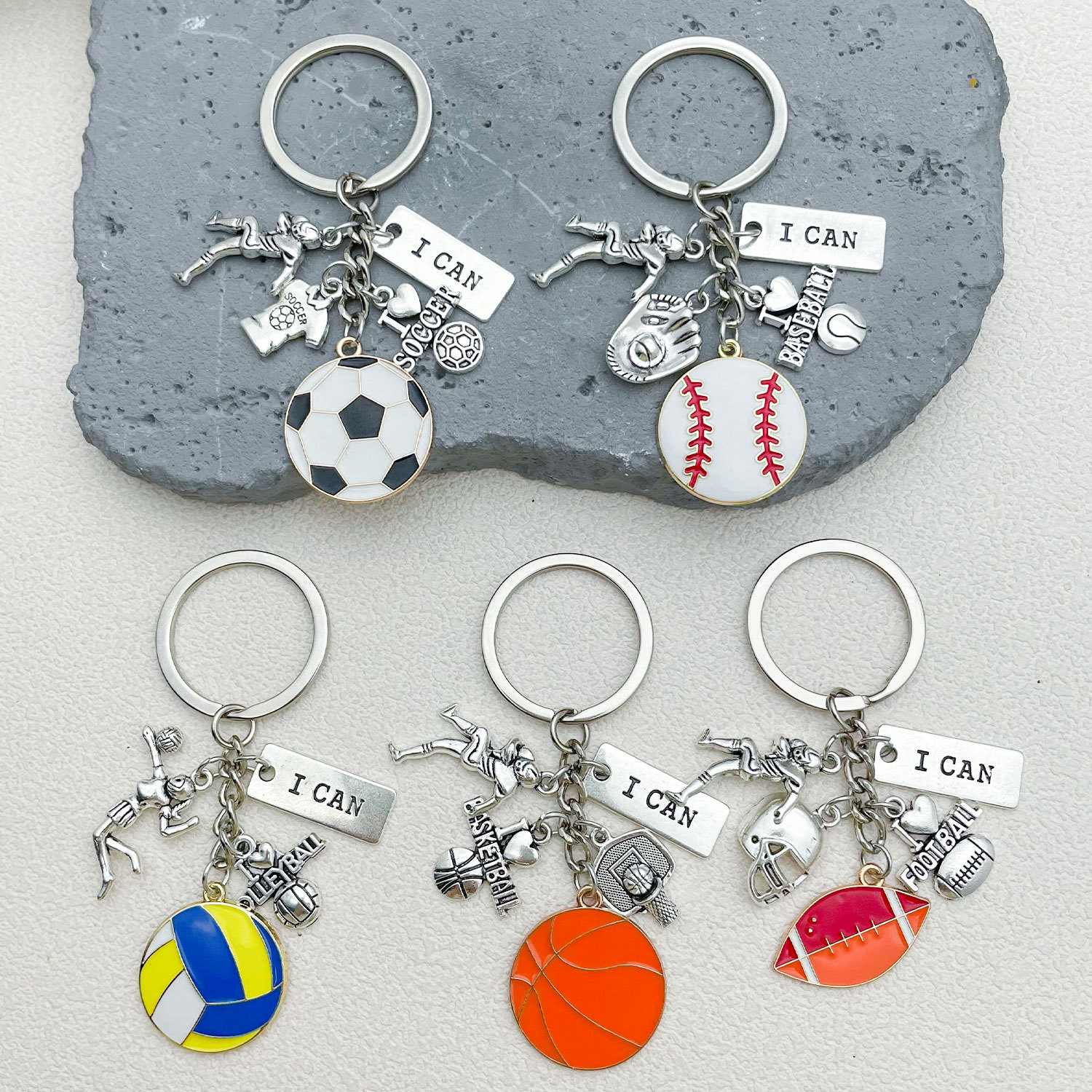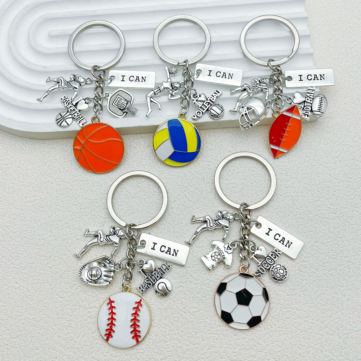 국경 간 창조적 인 팬 기념품 축구 농구 배구 야구 키 체인 합금 펜던트 스포츠 선물 해외 무역