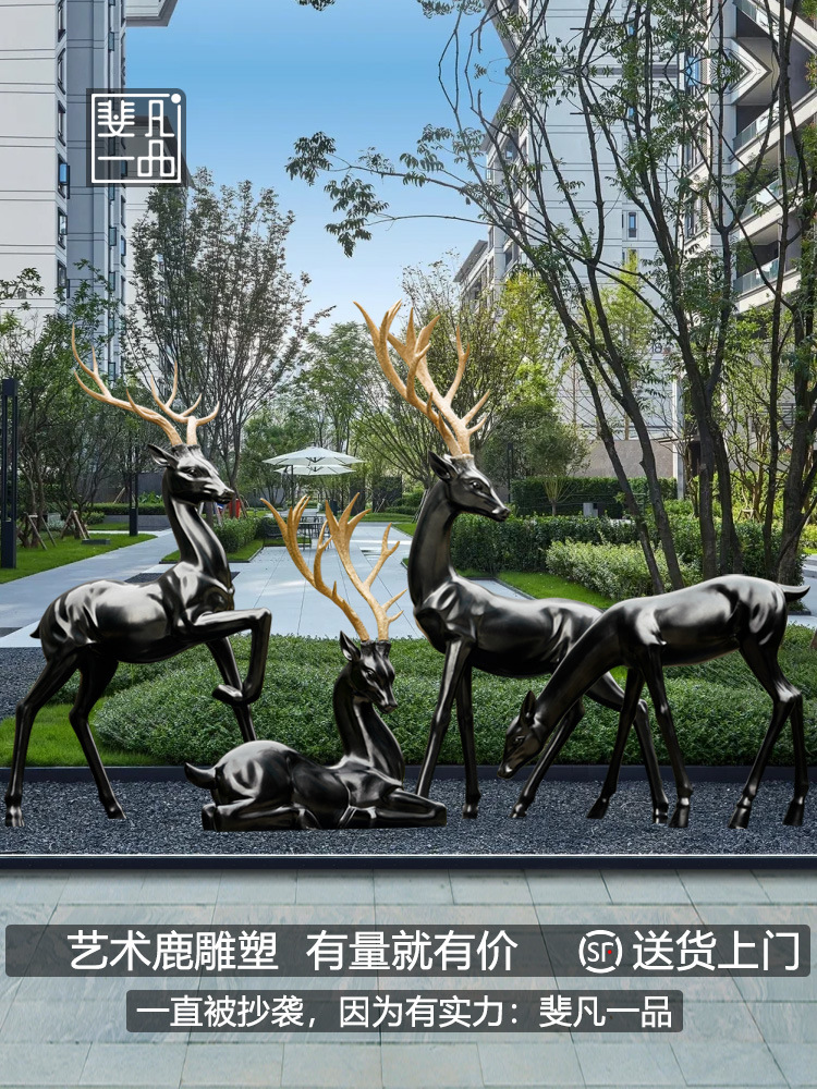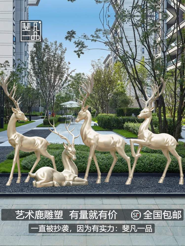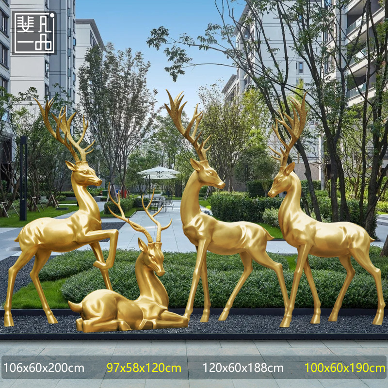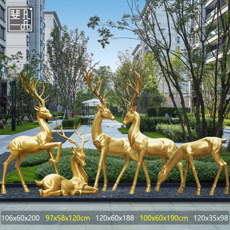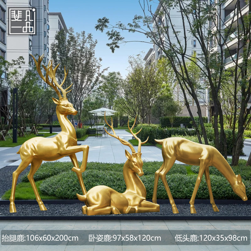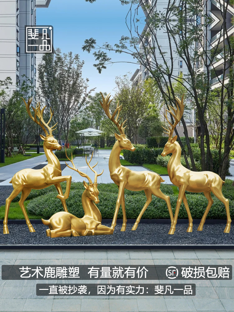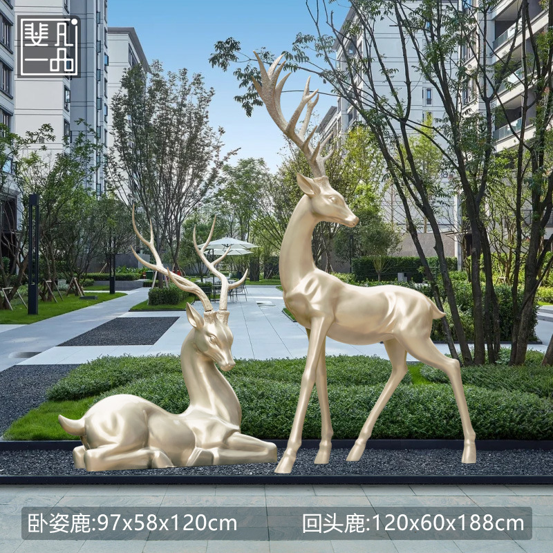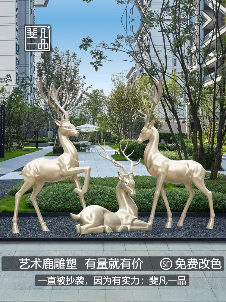 대형 바닥에서 천장까지 붙박이 사슴 조각 예술 사슴 커뮤니티 잔디 동물 장식품 공원 풍경 판매 사무실 행운의 사슴스토어 가기