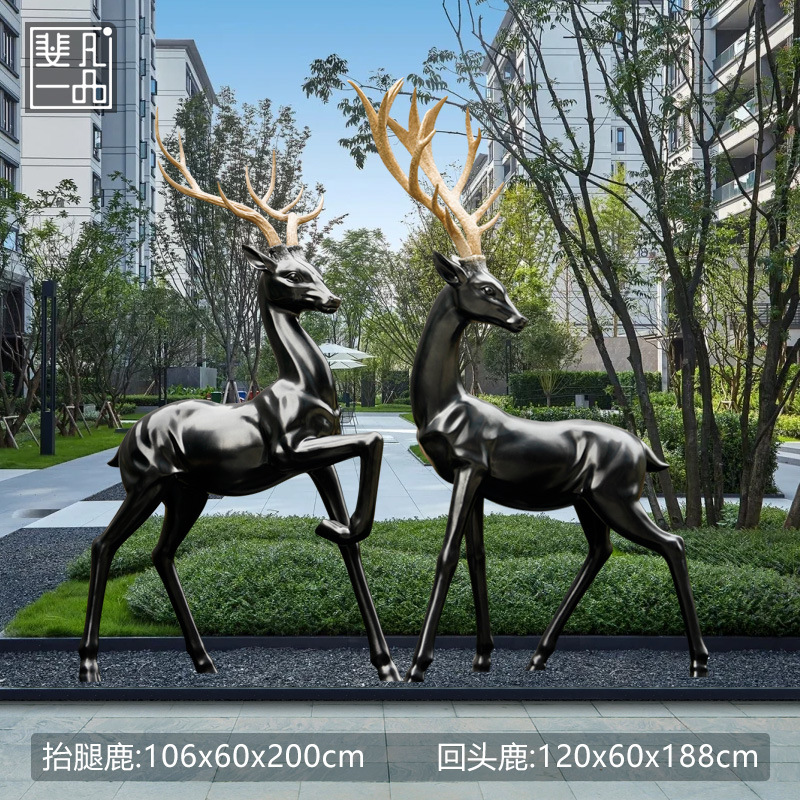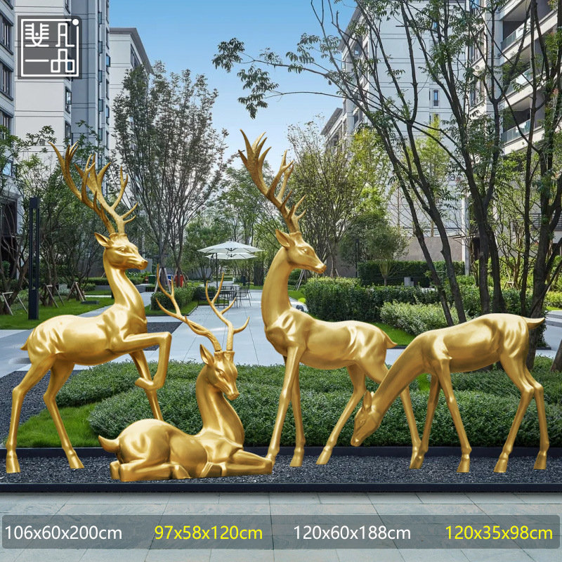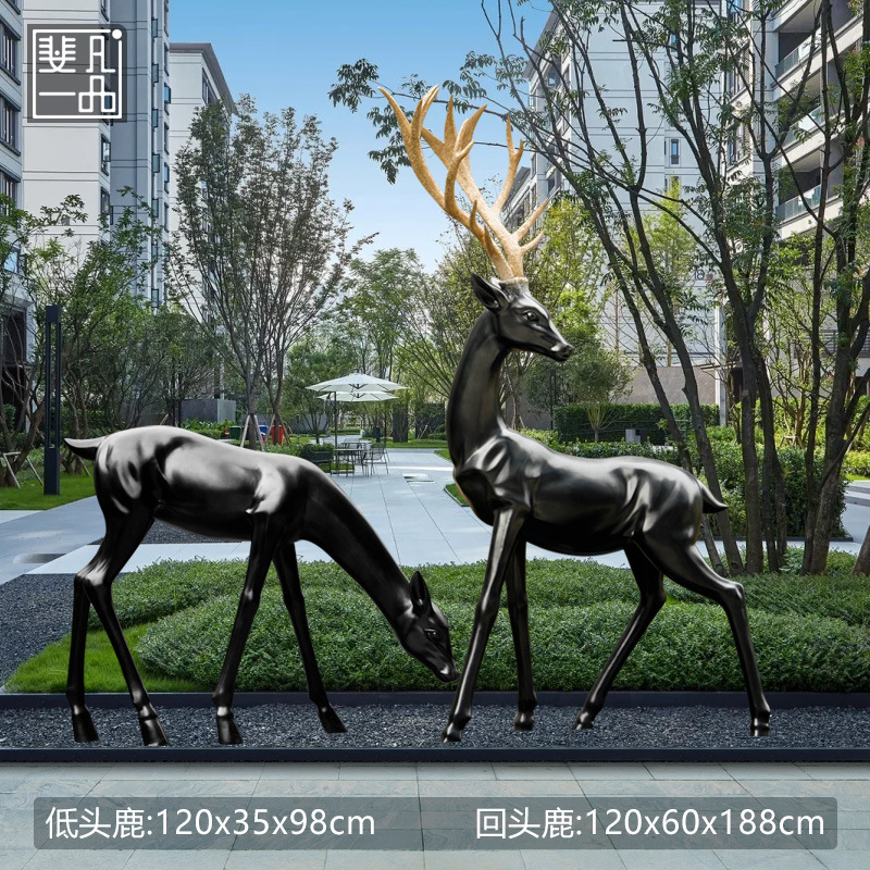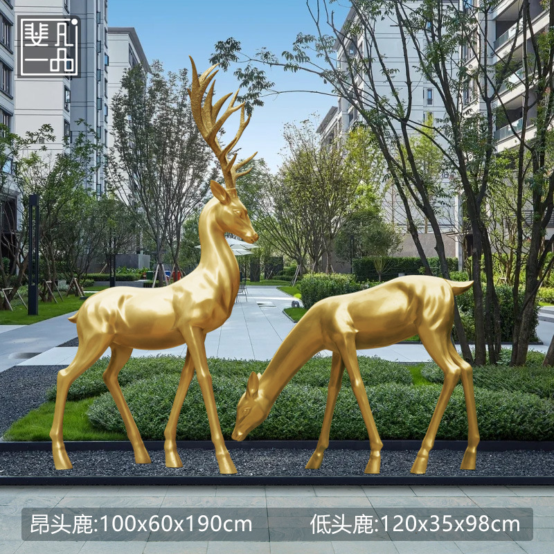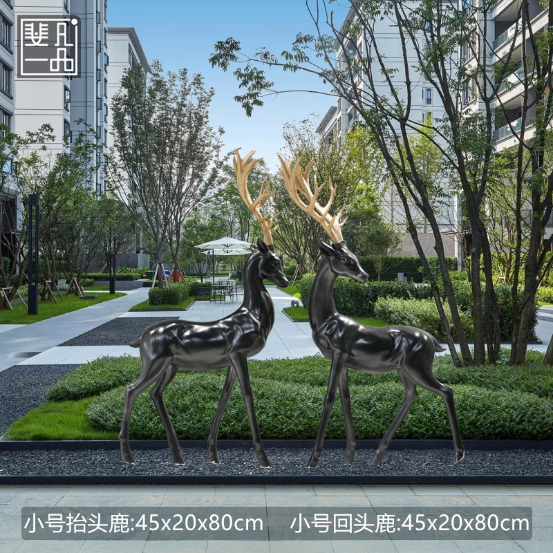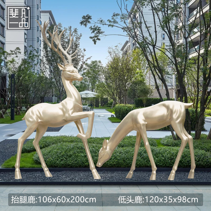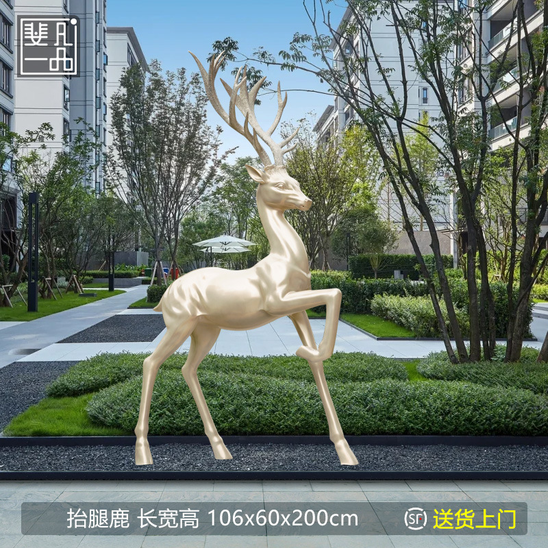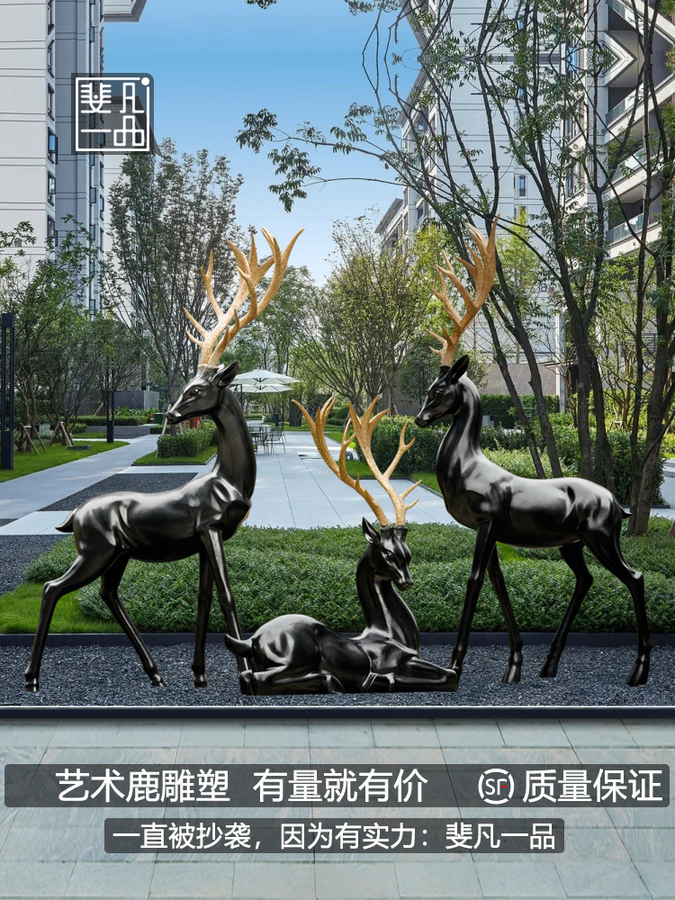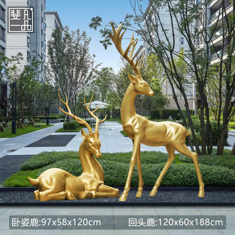 대형 바닥에서 천장까지 붙박이 사슴 조각 예술 사슴 커뮤니티 잔디 동물 장식품 공원 풍경 판매 사무실 행운의 사슴스토어 가기