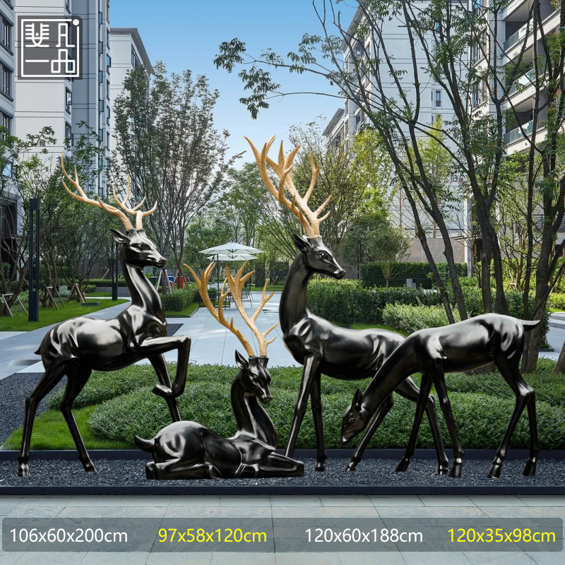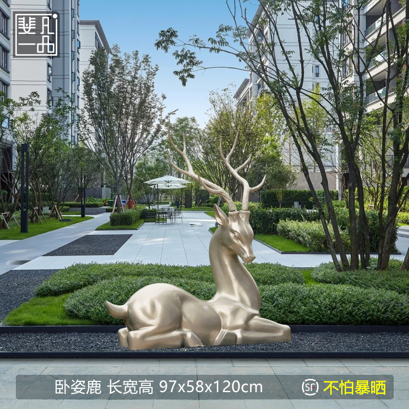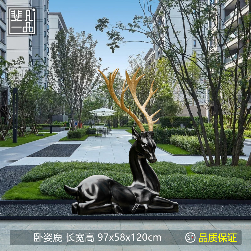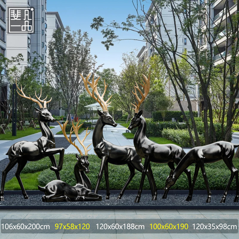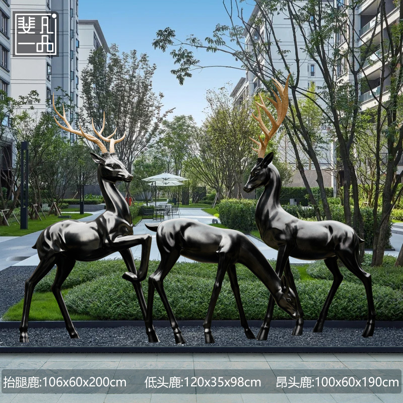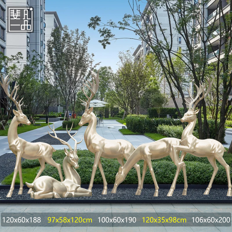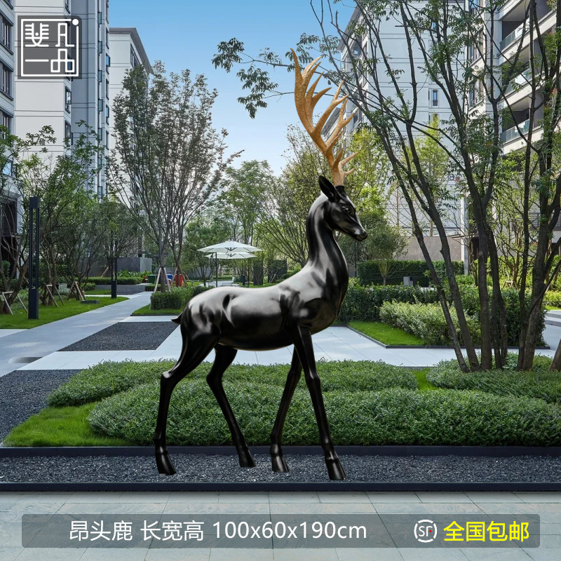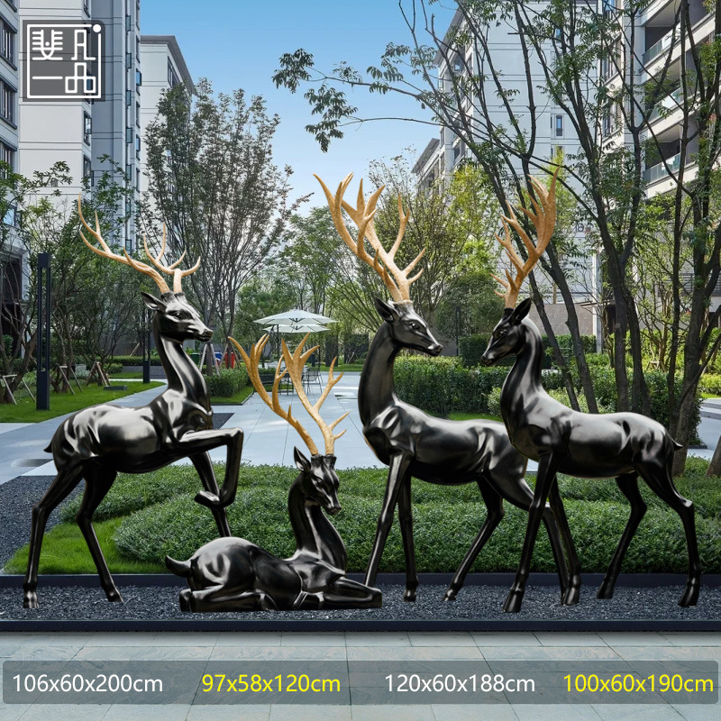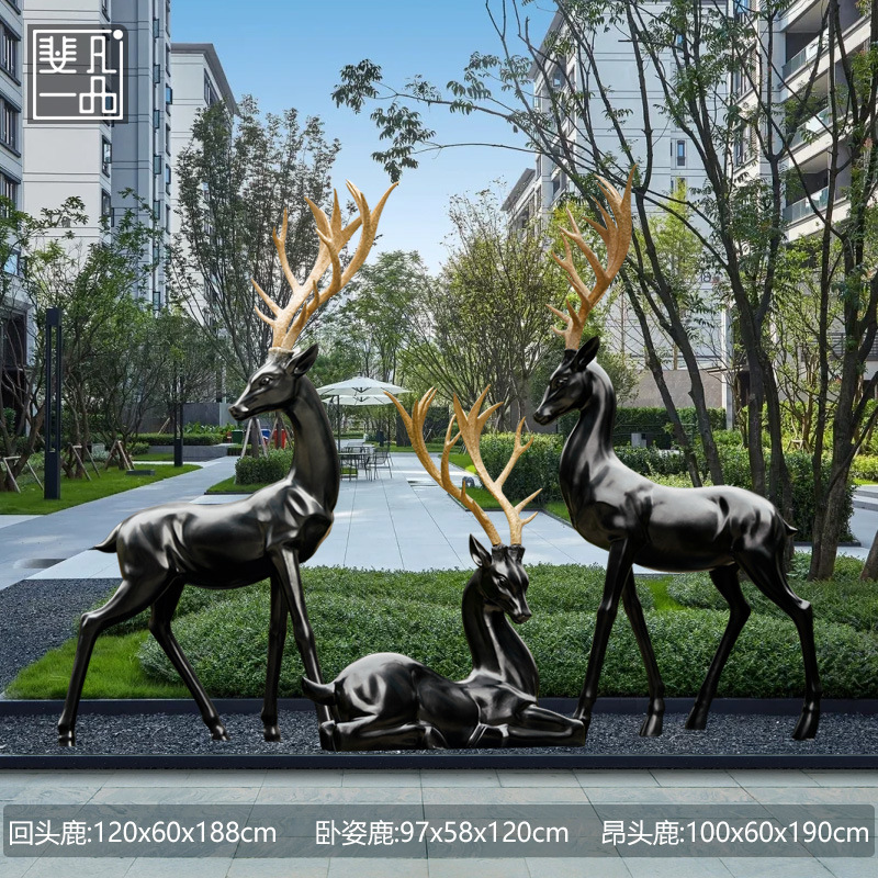 대형 바닥에서 천장까지 붙박이 사슴 조각 예술 사슴 커뮤니티 잔디 동물 장식품 공원 풍경 판매 사무실 행운의 사슴스토어 가기