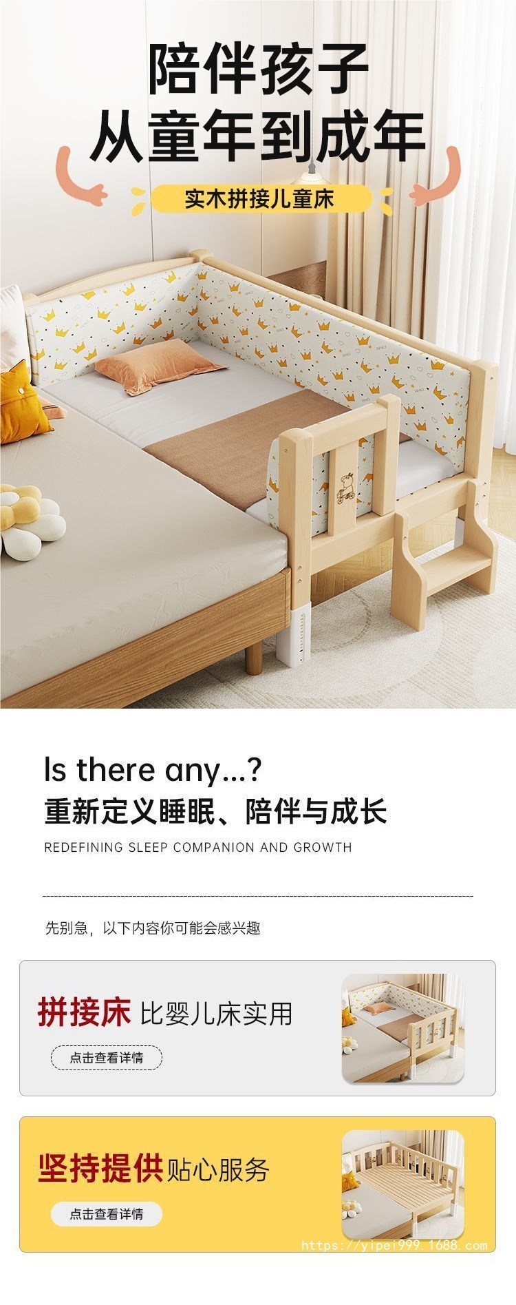 단단한 나무 접합 침대, 넓은 침대 옆, 남녀 아기 싱글 침대, 가드 레일이 있는 어린이 침대, 조절 가능한 유아용 침대스토어 가기