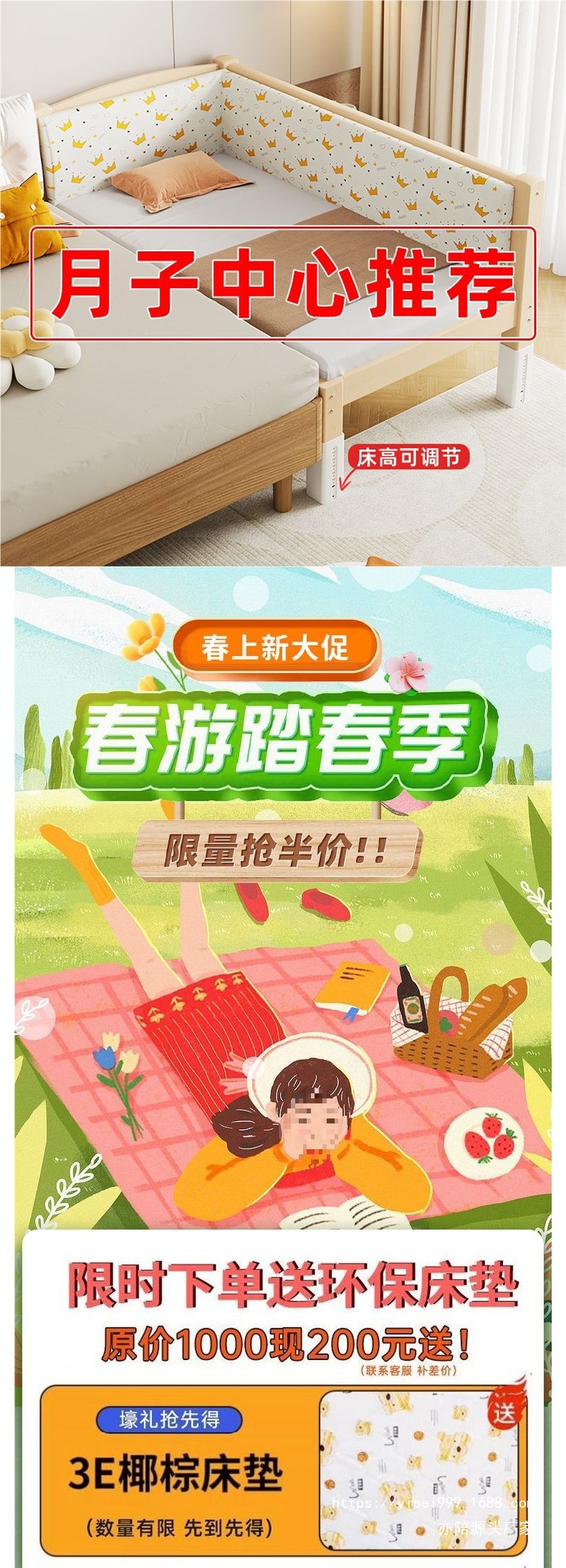 • 4면 가드레일 + 매트리스 + 침대 서라운드 + 꼬리 사다리 [침대 높이 조절 가능]