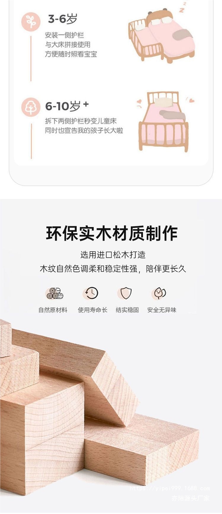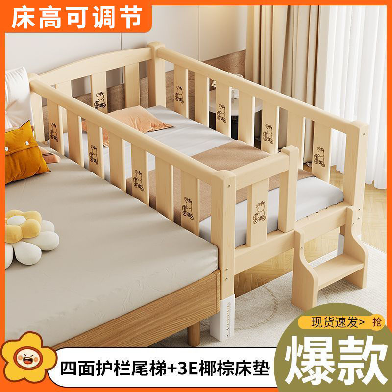 단단한 나무 접합 침대, 넓은 침대 옆, 남녀 아기 싱글 침대, 가드 레일이 있는 어린이 침대, 조절 가능한 유아용 침대
