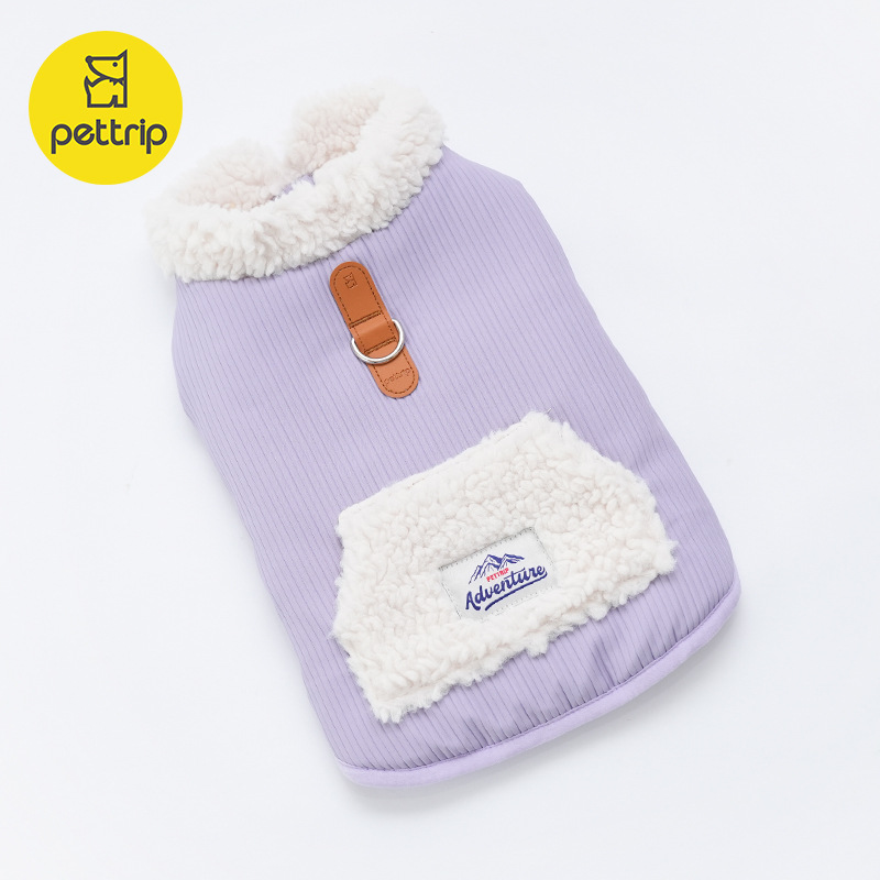 • 플러시 포켓 스탠드 칼라 코튼 조끼-퍼플