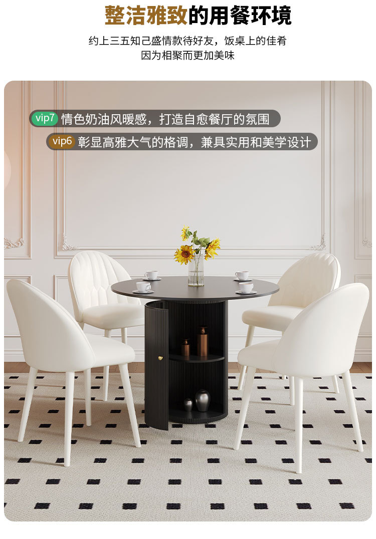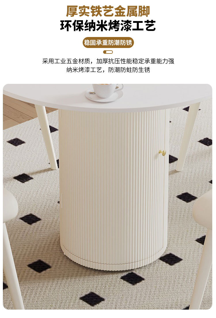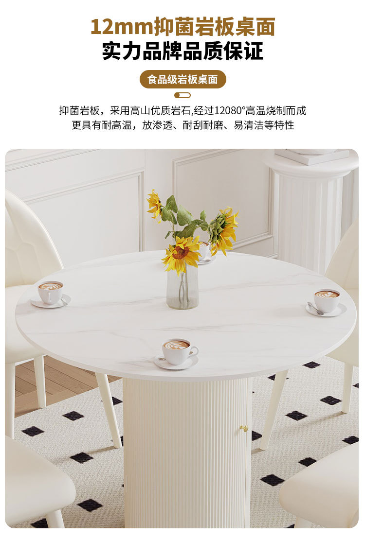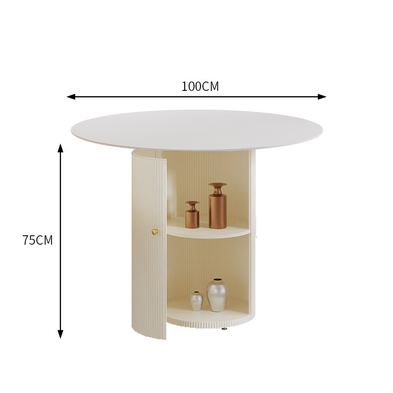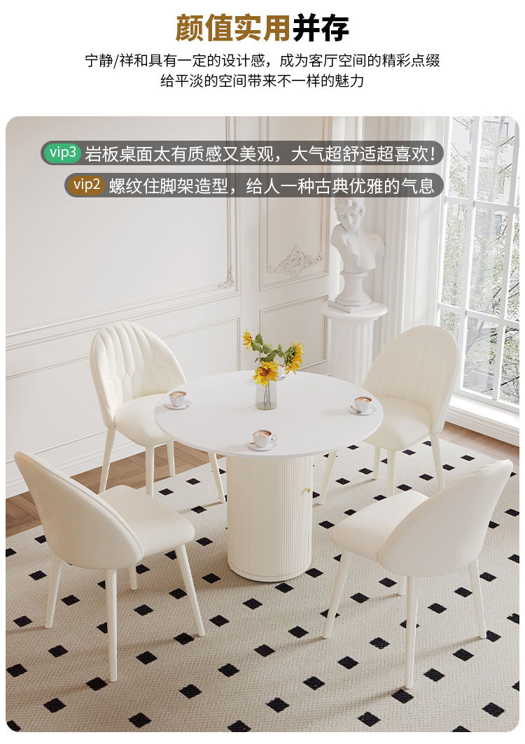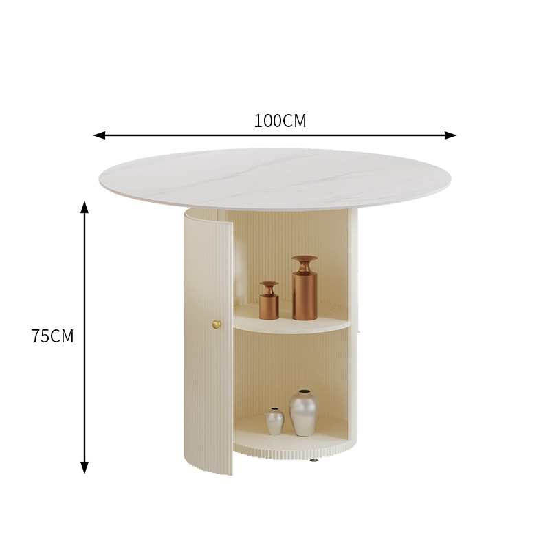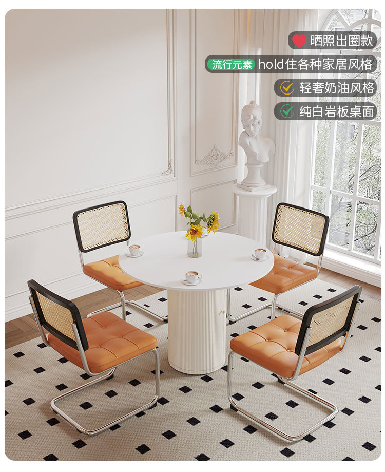 가정용 소형 아파트를 위한 크림 스타일의 원형 식탁, 석판 협상 테이블과 의자 조합, 현대적인 단순한 로마 기둥 및 원통형 기둥스토어 가기