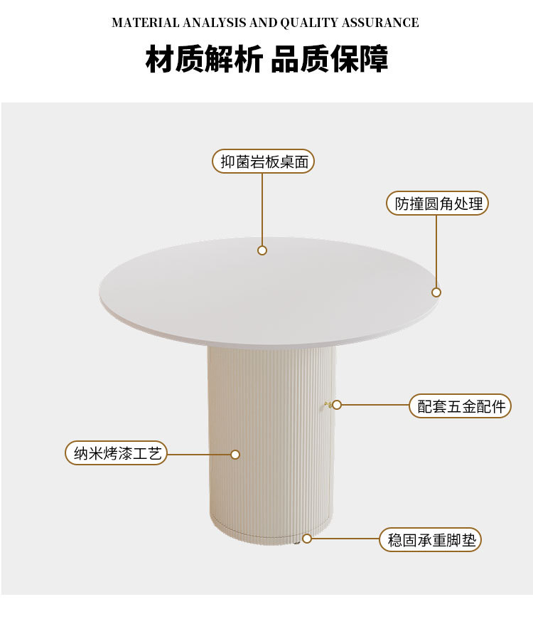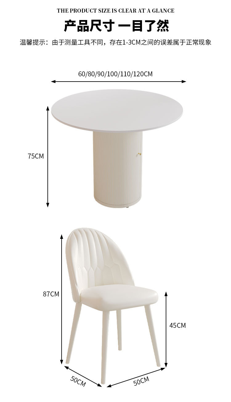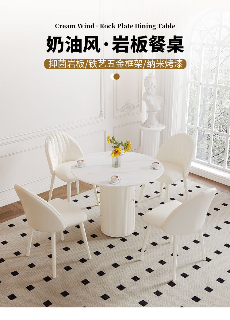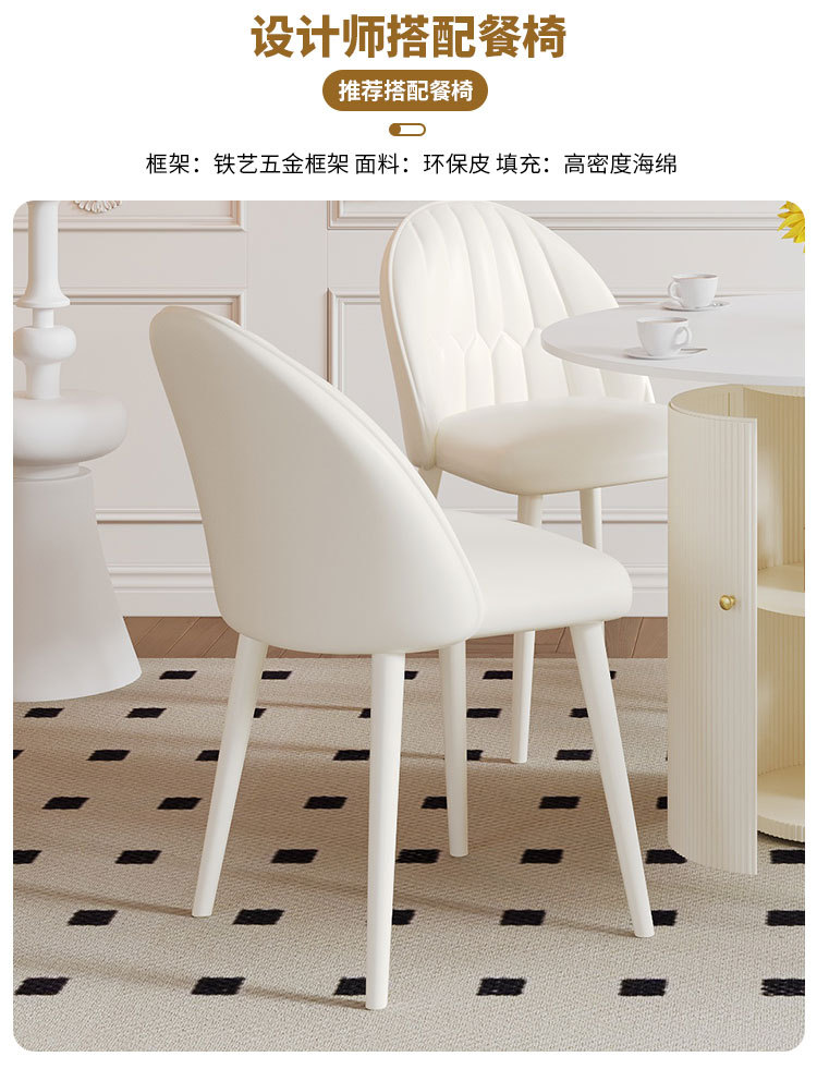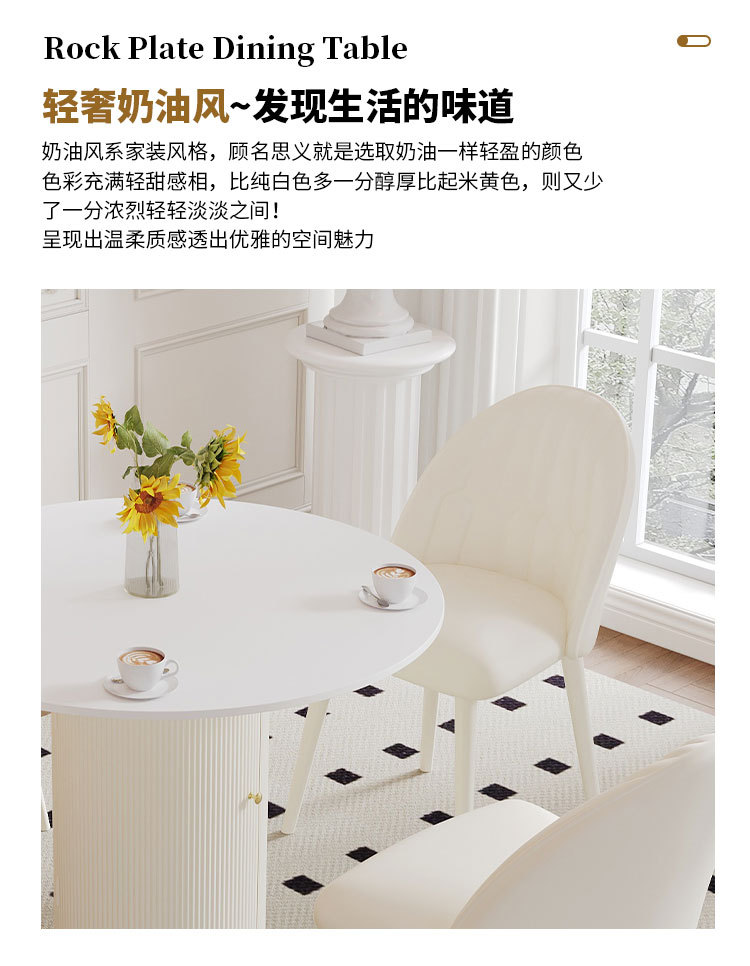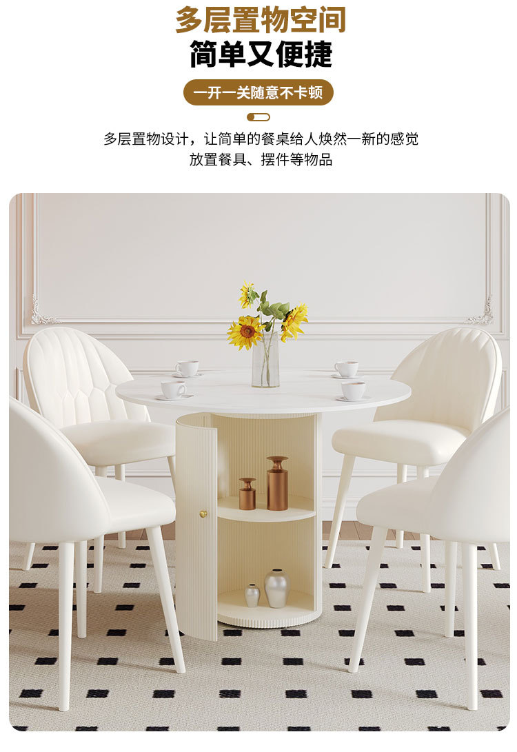 가정용 소형 아파트를 위한 크림 스타일의 원형 식탁, 석판 협상 테이블과 의자 조합, 현대적인 단순한 로마 기둥 및 원통형 기둥