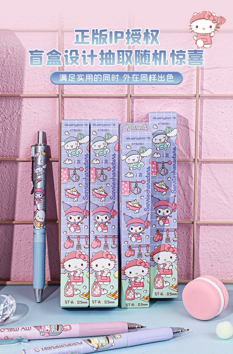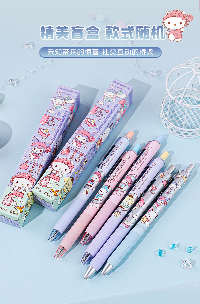 Sanrio 프레스 젤 펜 정품 만화 Sanrio 시리즈 블라인드 박스 펜 학생 속건성 ST 헤드 블랙 펜스토어 가기