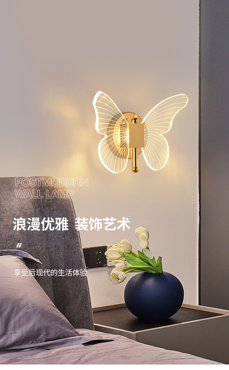 국경 나비 벽 램프 거실 배경 벽 통로 복도 조명 led 현대 간단한 고급 침실 침대 옆 벽 램프스토어 가기