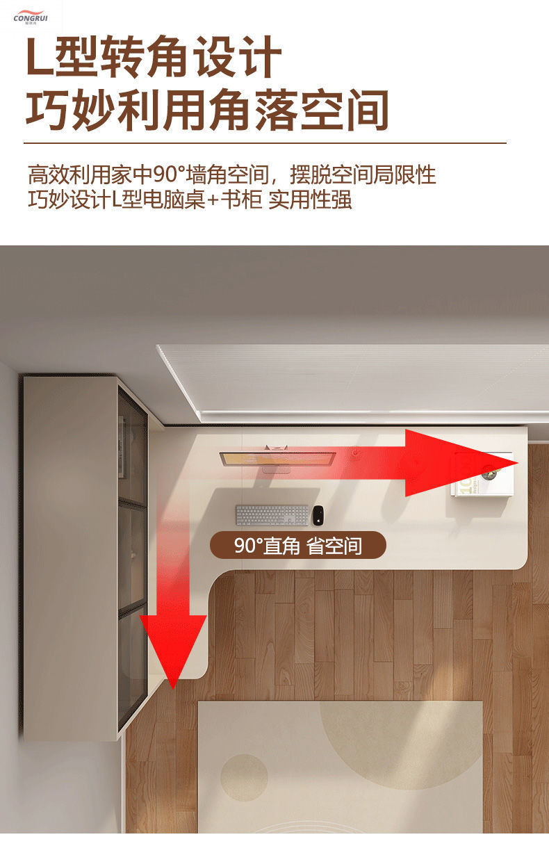간단한 사무용 책상, 데스크탑 컴퓨터 책상, 코너 책상, 책장 일체형 조합 책상, 학생 침실 전용