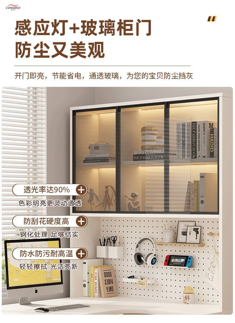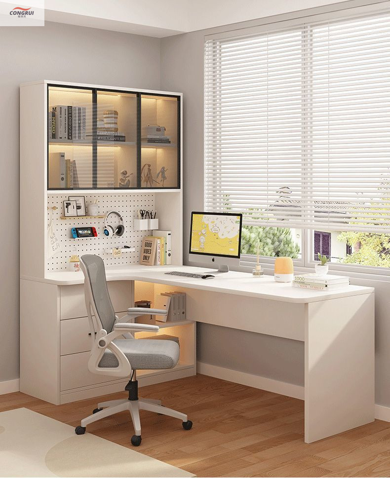 • 왼쪽에 고급 회색 구멍 보드 코너 테이블-책장 ()
