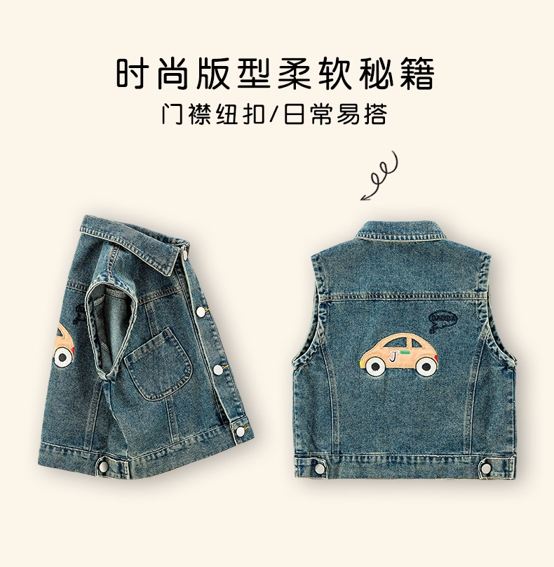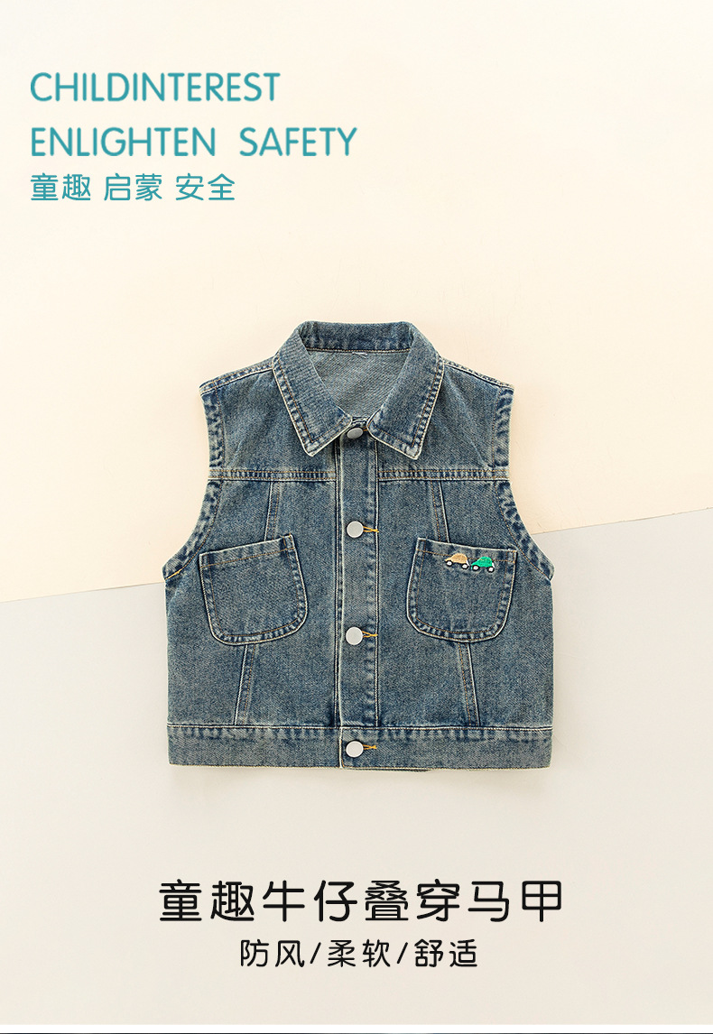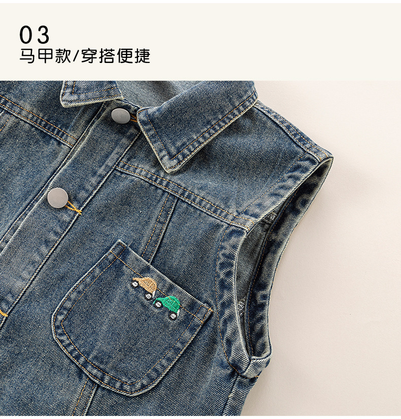 남아용 조끼, 봄 신상품, 아동용 어깨 자르기 재킷, 아동용 조끼 상의, 봄 의류, 패셔너블한 아동용 데님 조끼