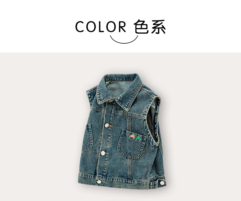 남아용 조끼, 봄 신상품, 아동용 어깨 자르기 재킷, 아동용 조끼 상의, 봄 의류, 패셔너블한 아동용 데님 조끼스토어 가기