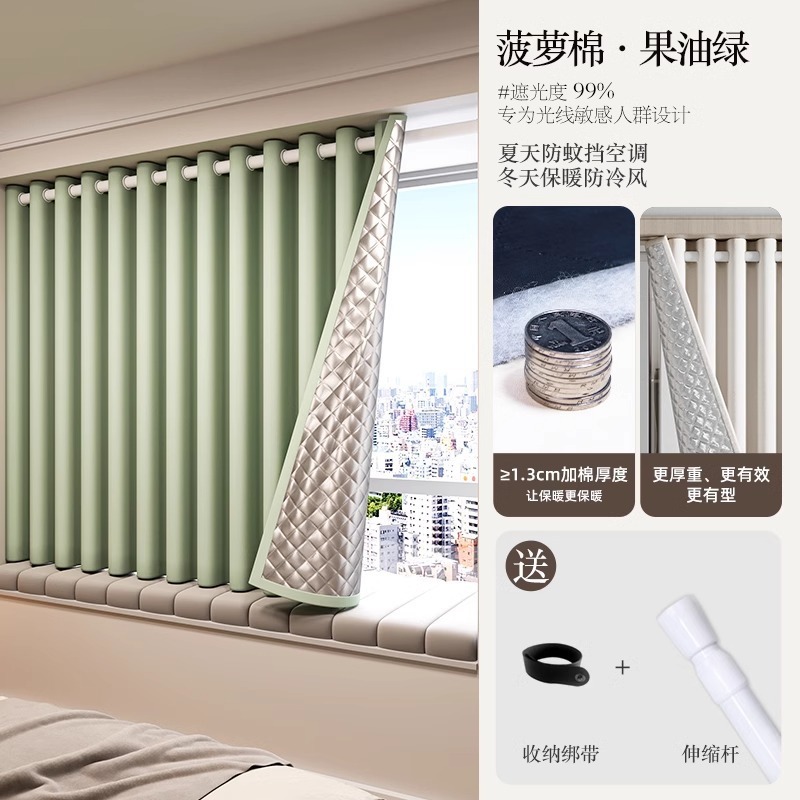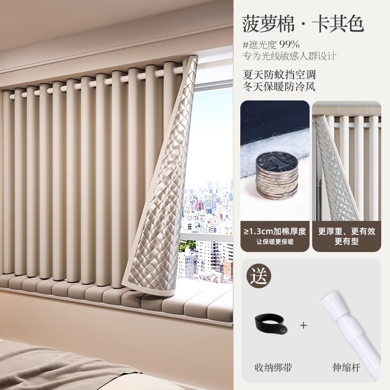 • 카키색 - 면과 두꺼움 [신축봉+끈+커튼]