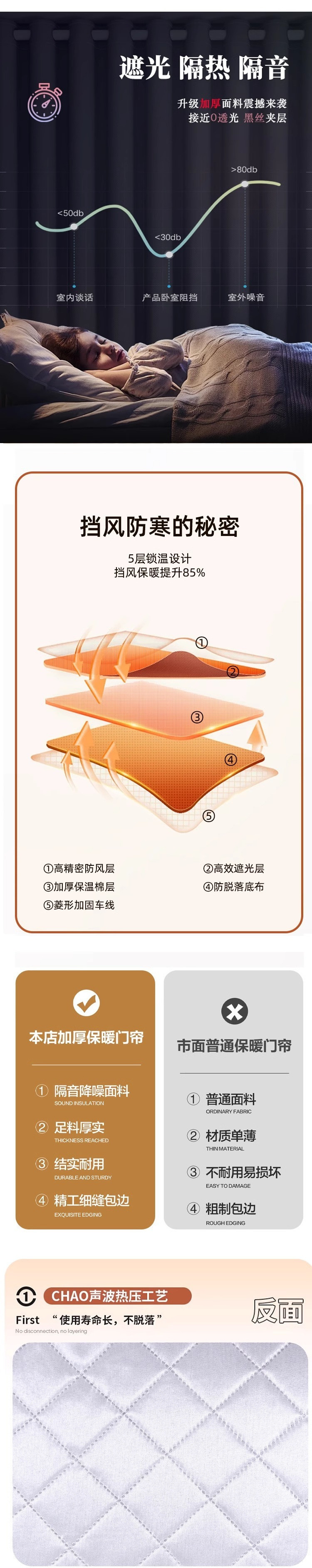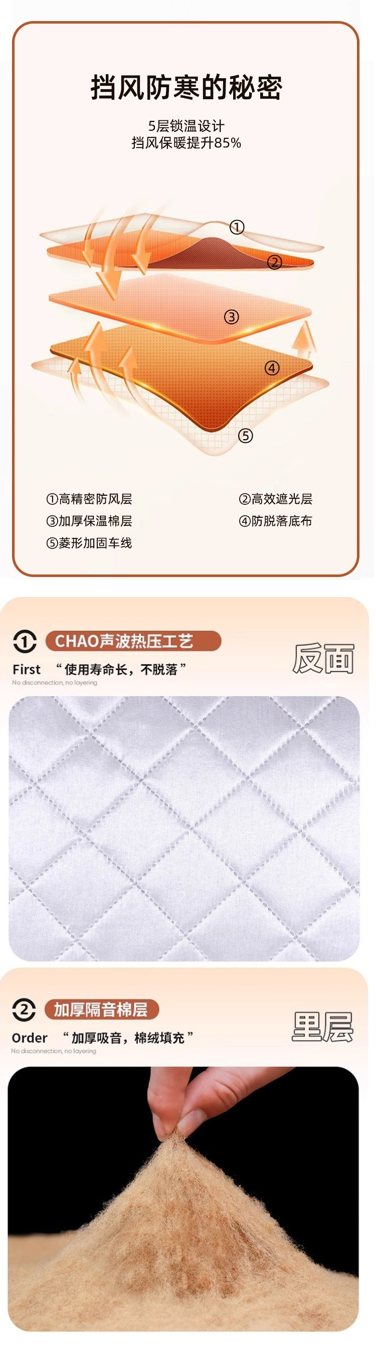 방풍 및 따뜻한 커튼, 겨울철 방한창, 펀치프리, 밀봉, 두꺼운 면 단열 플로어 창, 방음 도어 커튼