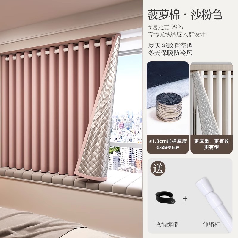 • 샌드핑크 - 면과 두꺼움을 더한 [신축봉+스트랩+커튼]