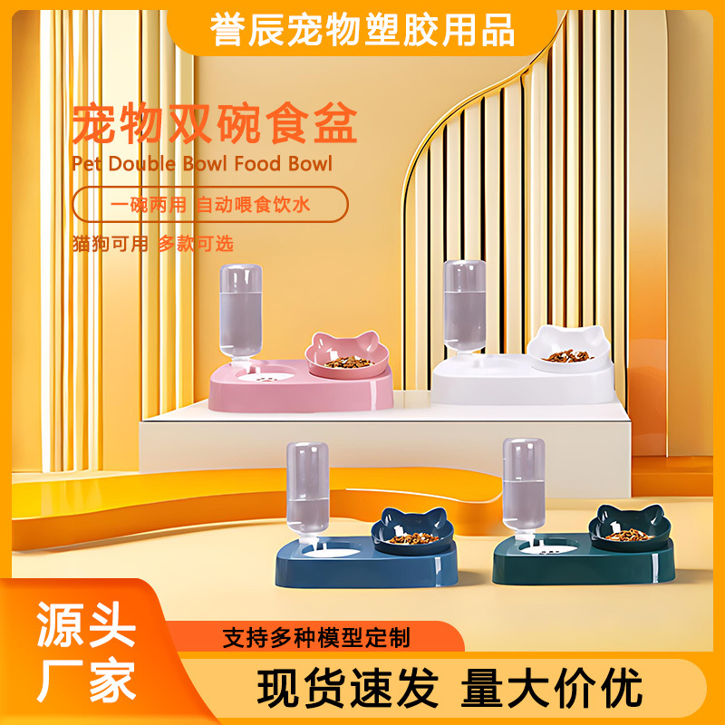 애완동물 이중 그릇 자동 급식기 및 급수기, 고양이와 강아지용, 습기 방지, 각도 조절 가능 이중 그릇 식기 도매