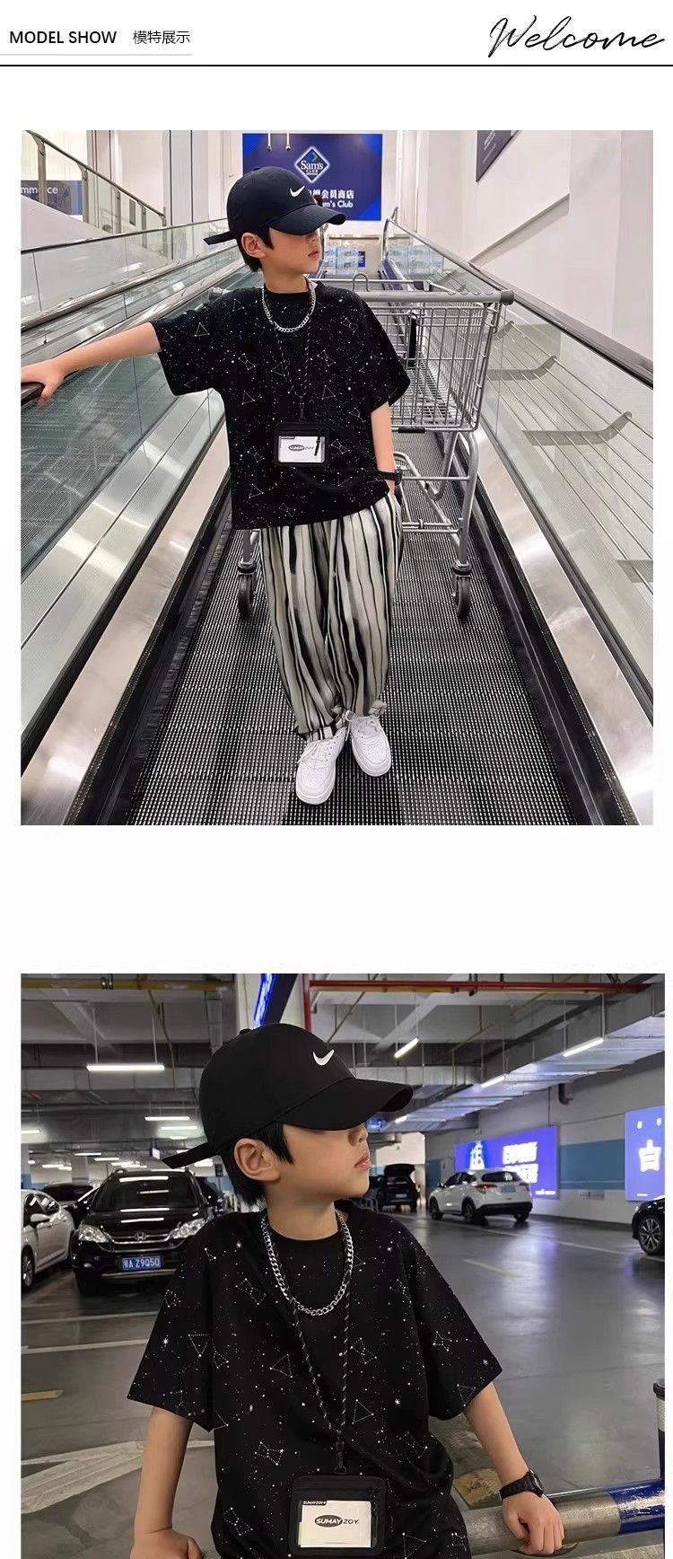 남성용, 중년 및 노년용 반팔 티셔츠 여름 2025 새로운 스타일의 소년의 멋지고 패셔너블한 여름 바지 정장 어린이의 멋진 티셔츠스토어 가기