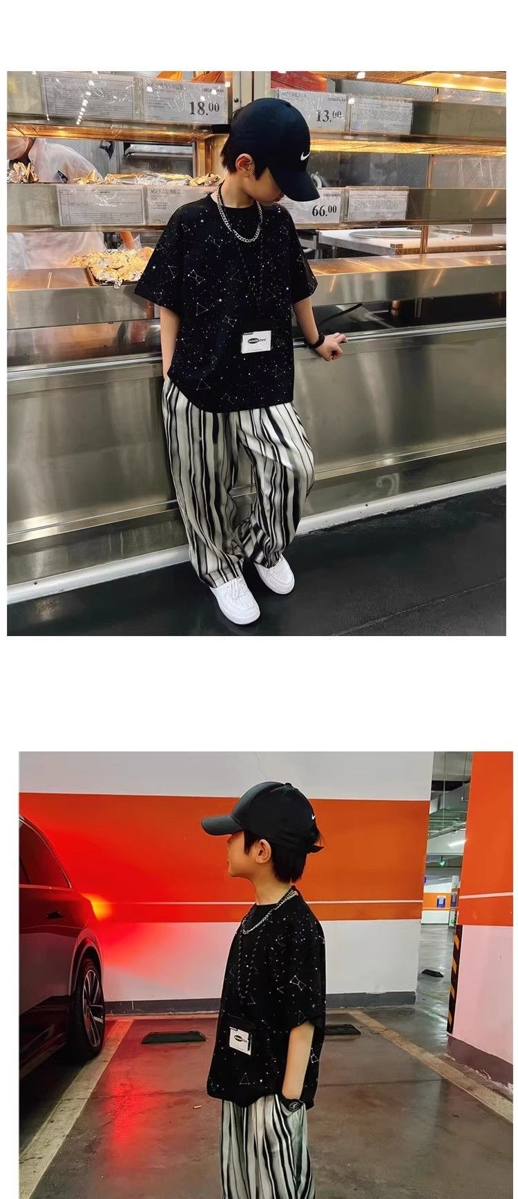 남성용, 중년 및 노년용 반팔 티셔츠 여름 2025 새로운 스타일의 소년의 멋지고 패셔너블한 여름 바지 정장 어린이의 멋진 티셔츠