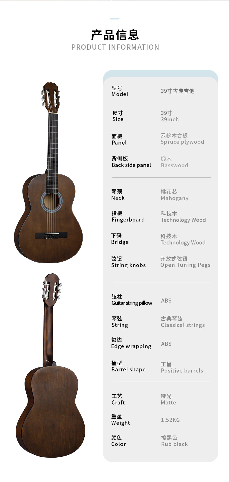 39inch 클래식 기타 스프루스 매트 클래식 기타 기타 성인 연주 등급 기타 악기스토어 가기