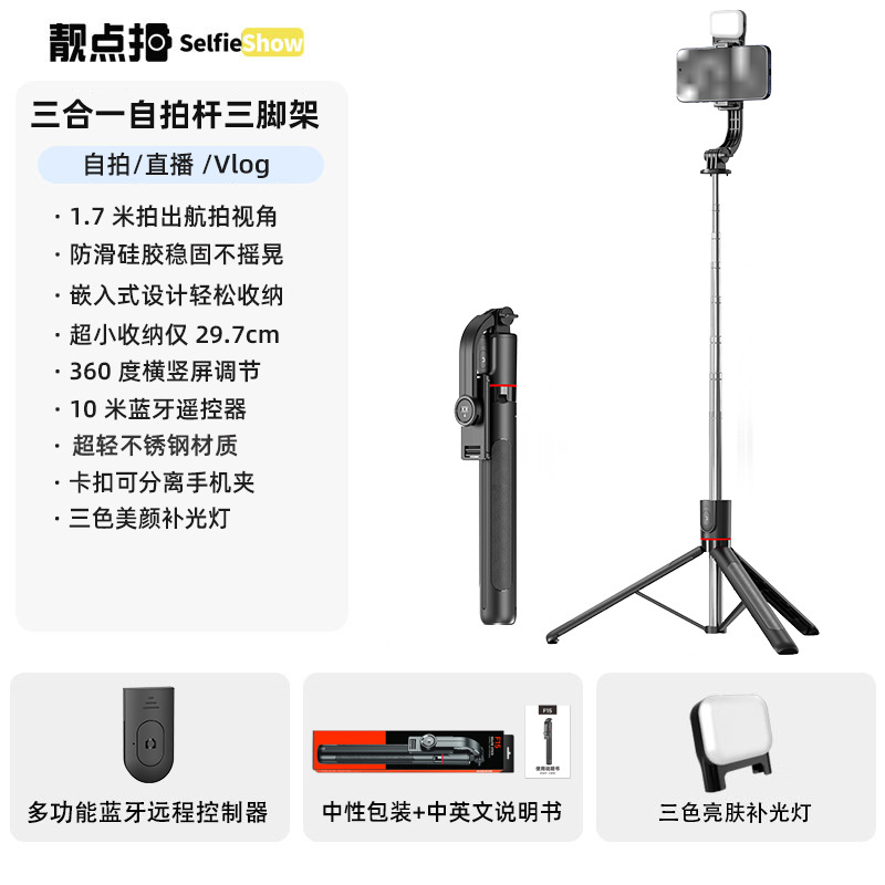 • 【F15s】뷰티 램프 + 삼각대 + 블루투스 리모컨 + 텔레스코픽 폴