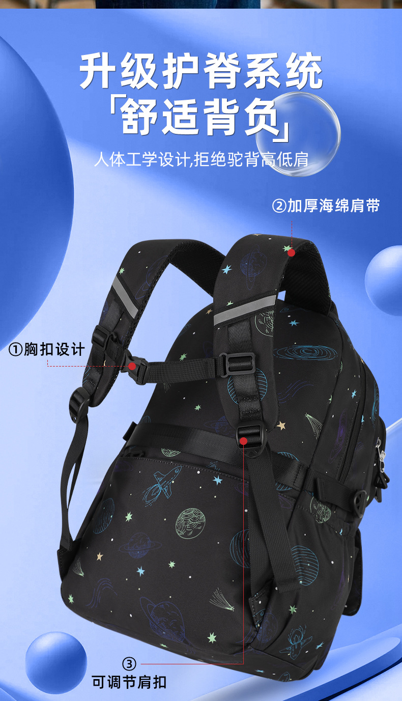 초등학생 별이 빛나는 하늘 캐주얼 책가방 1-3-6 학년 중학생 배낭 경량 냉장고 문 소년 배낭