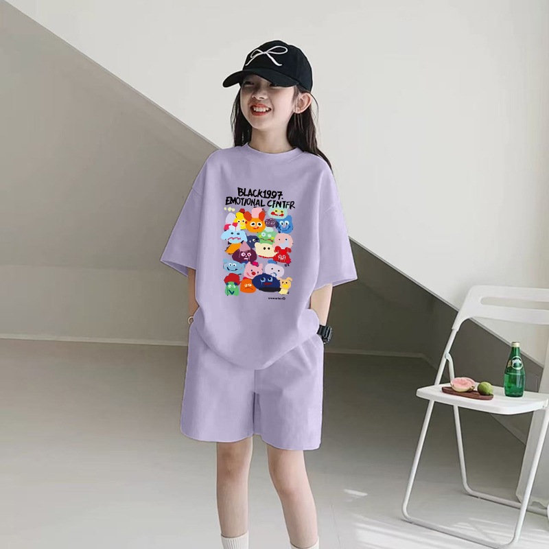 국경 간 소녀 여름 정장 2025 새로운 중대형 어린이 만화 어린이 반바지 투피스 세트 루즈 캐주얼 스포츠스토어 가기