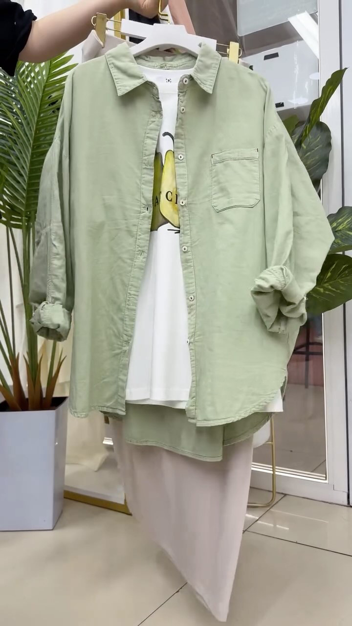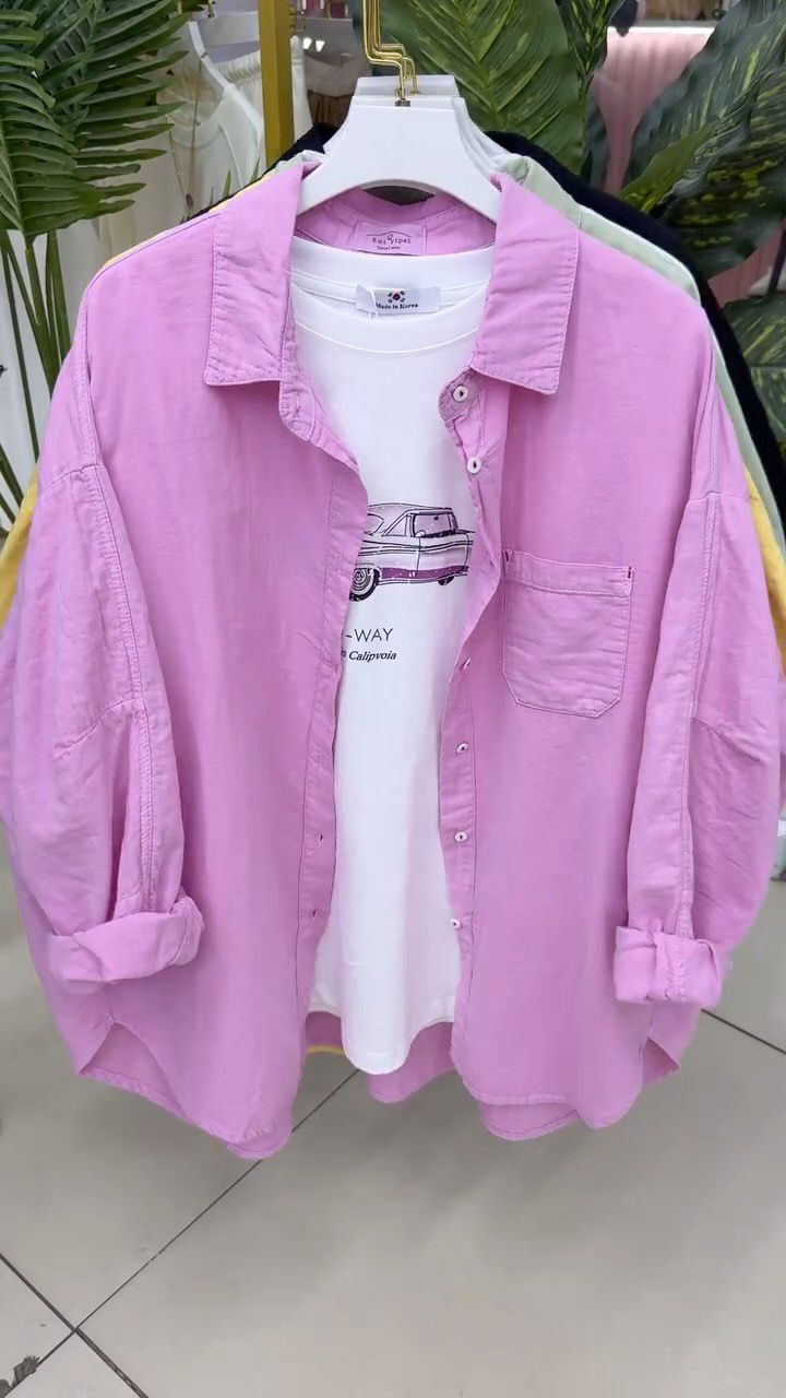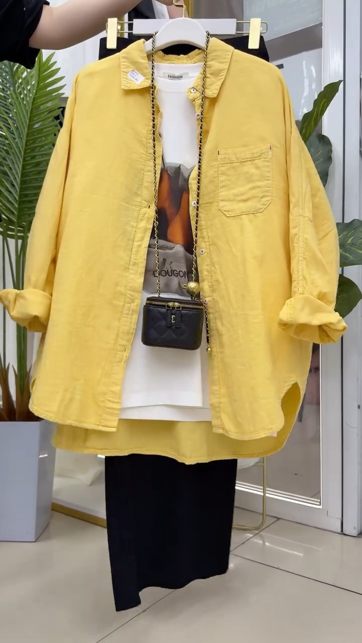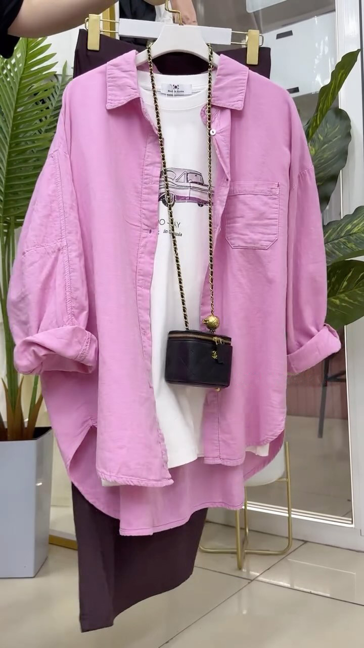 ed3465 다재다능한 루즈 캐주얼 긴팔 셔츠 2025 봄 여름 신상 살을 커버하고 슬림한 디자인 셔츠 여성복스토어 가기