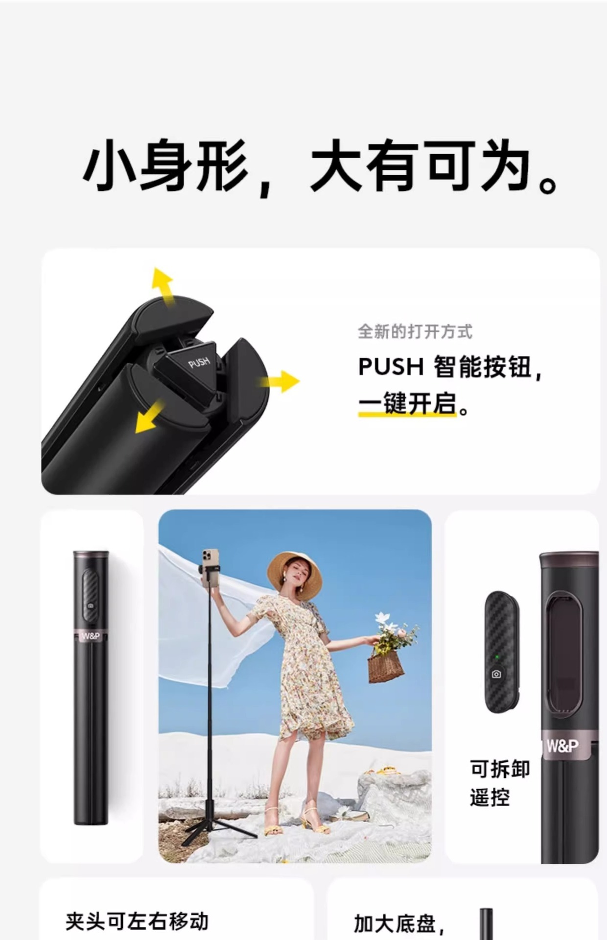 W&P 휴대폰 셀카봉 스탠드 삼각대 라이브 방송 스탠드 핸드헬드 사진 촬영 블루투스 스틱 블루투스 리모컨스토어 가기