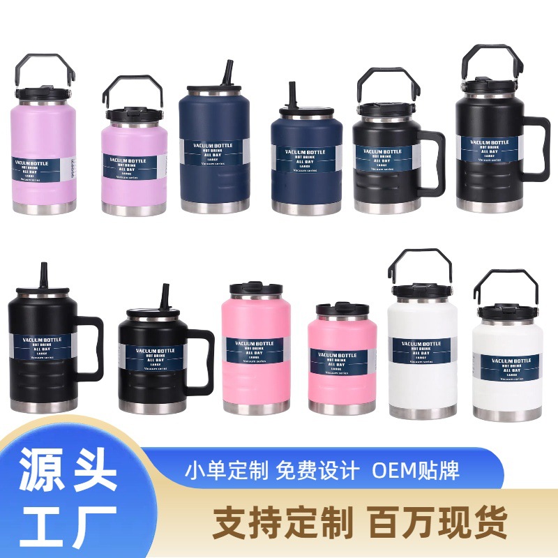 새로운 대용량 얼음 양동이 304 스테인레스 스틸 진공 단열 컵 빨대 야외 등산 스포츠 물병