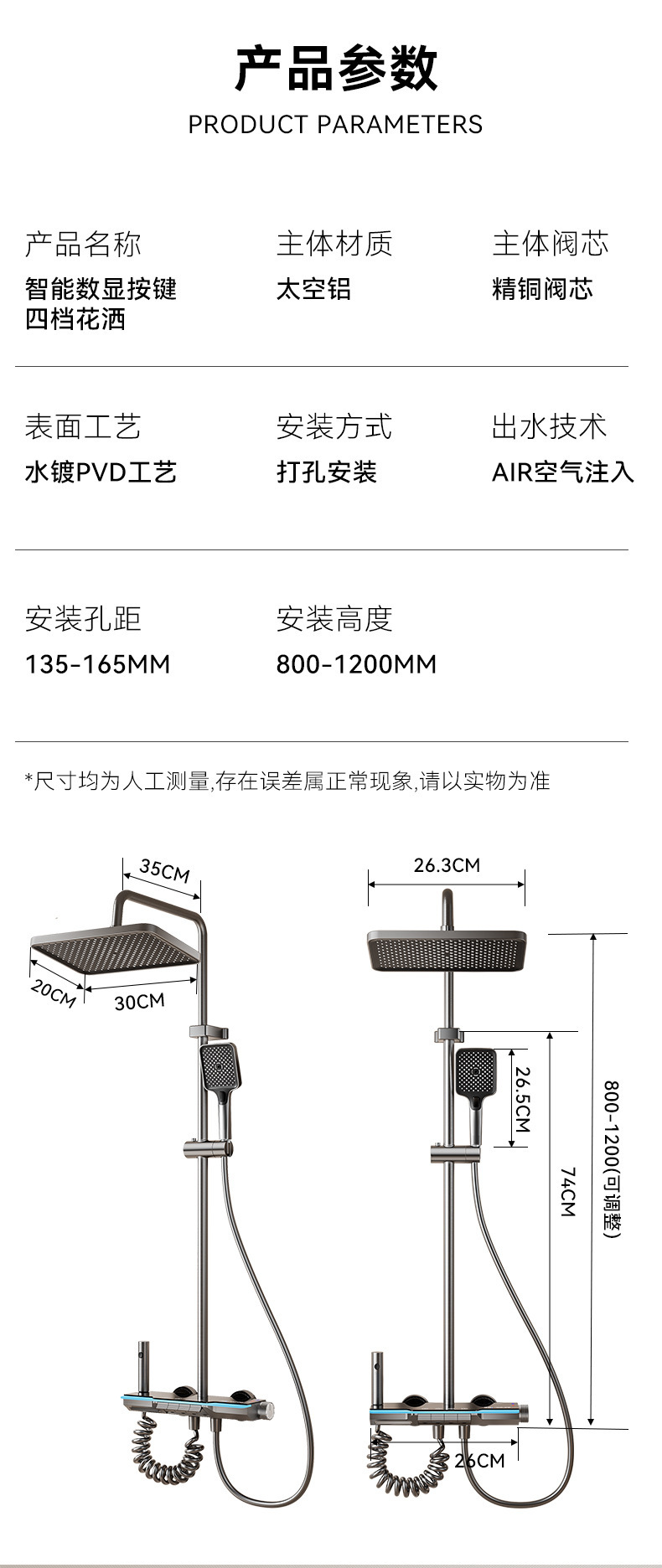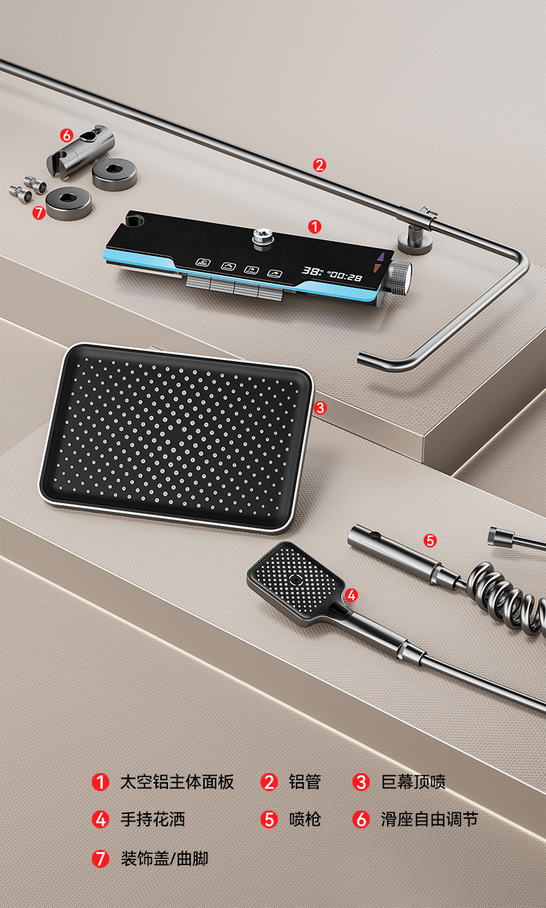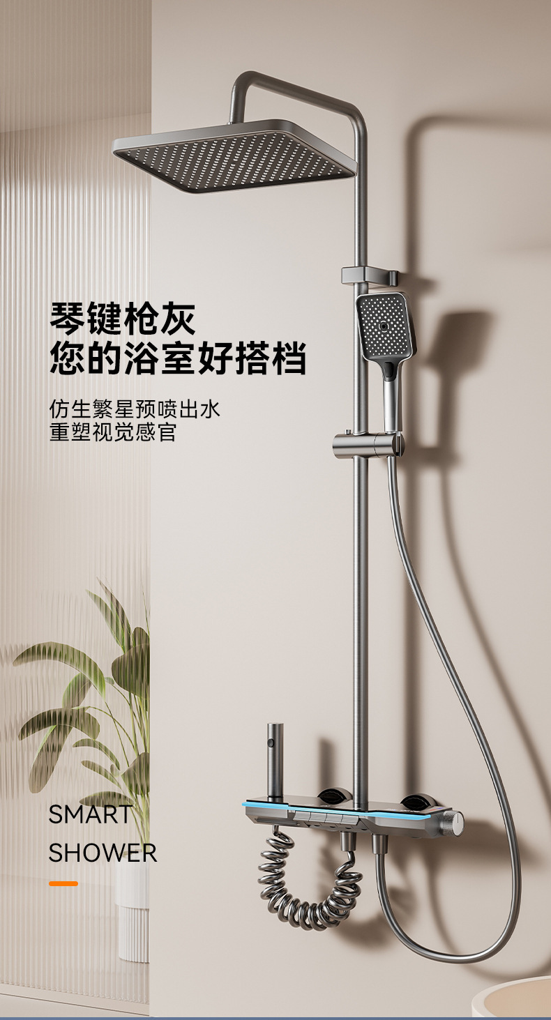 호텔 전용 가정용 건 그레이 샤워 세트 욕실 레인 분위기 조명 디지털 디스플레이 인터넷 연예인 피아노 키