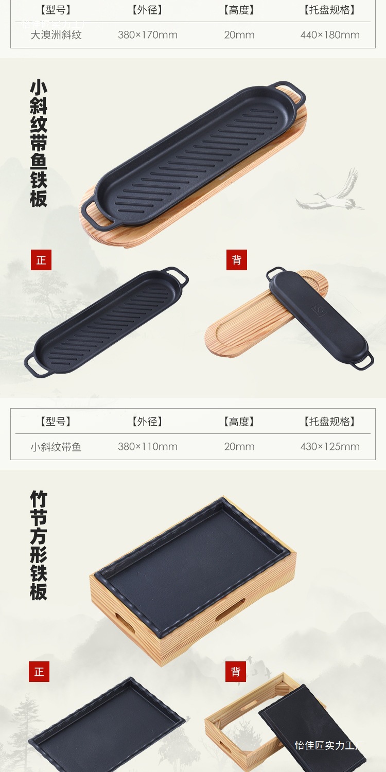상업용 철판구이 철판 원형 바베큐 프라이팬 직사각형 한국식 스테이크 플레이트 바베큐 생선 플레이트 가정용스토어 가기