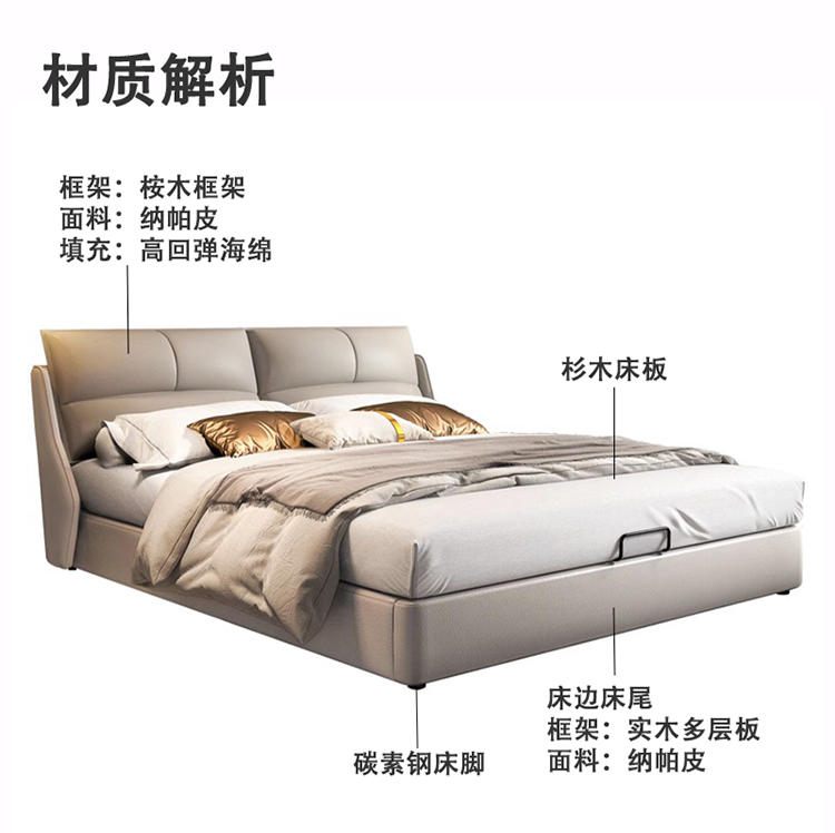 • 가죽 침대 + 벨벳 라텍스 스프링 매트리스