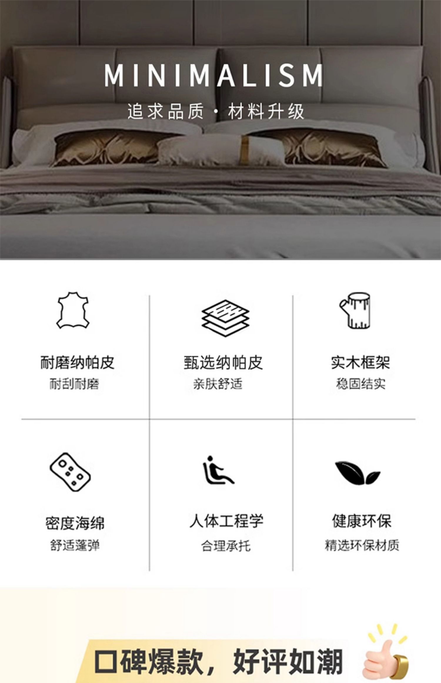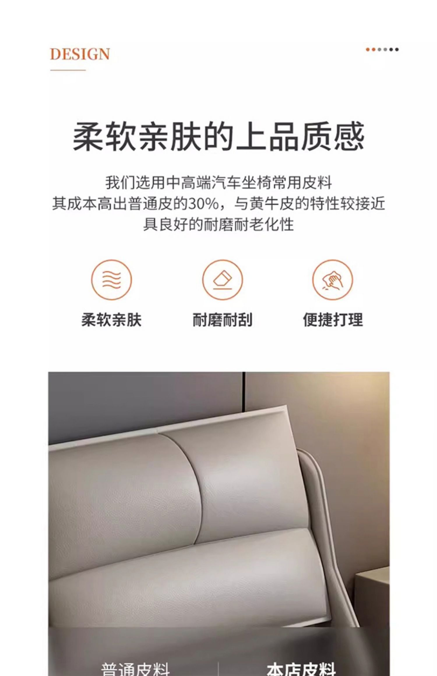 신제품 2025 새로운 현대적인 간단한 가죽 침대 마스터 침실 분위기있는 더블 1.8m 소프트 패키지 단단한 나무 저장스토어 가기