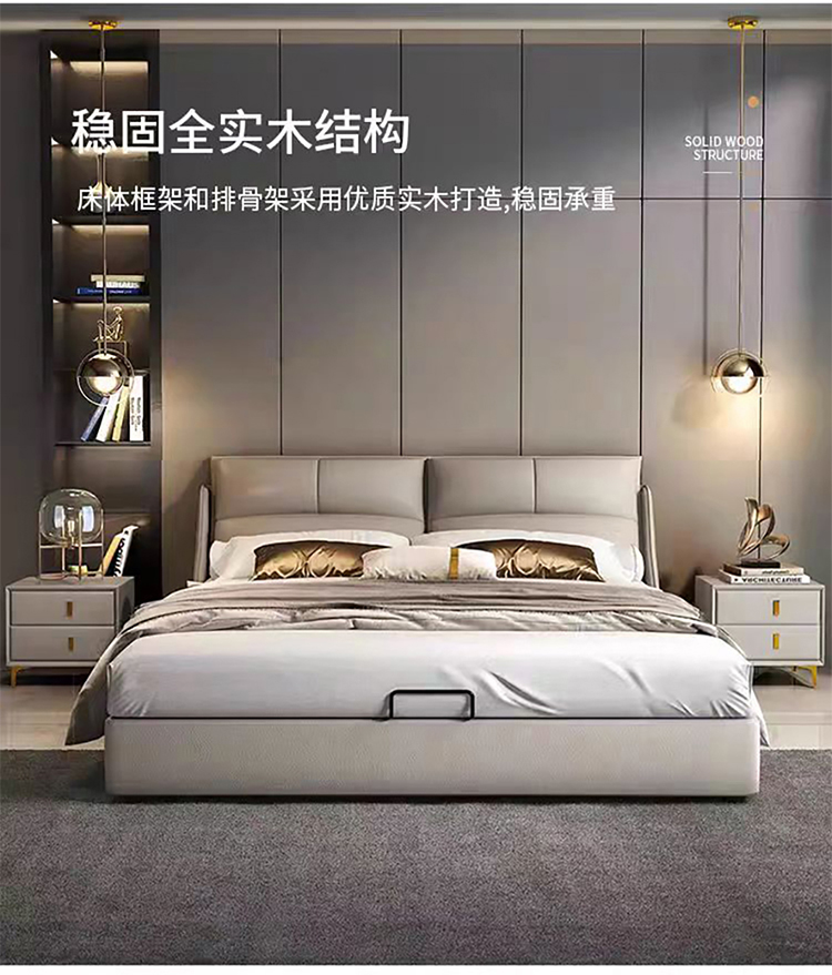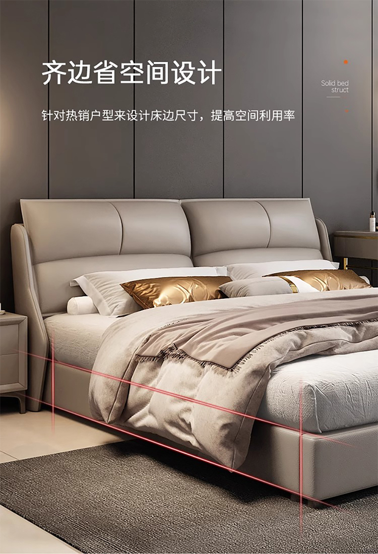 신제품 2025 새로운 현대적인 간단한 가죽 침대 마스터 침실 분위기있는 더블 1.8m 소프트 패키지 단단한 나무 저장
