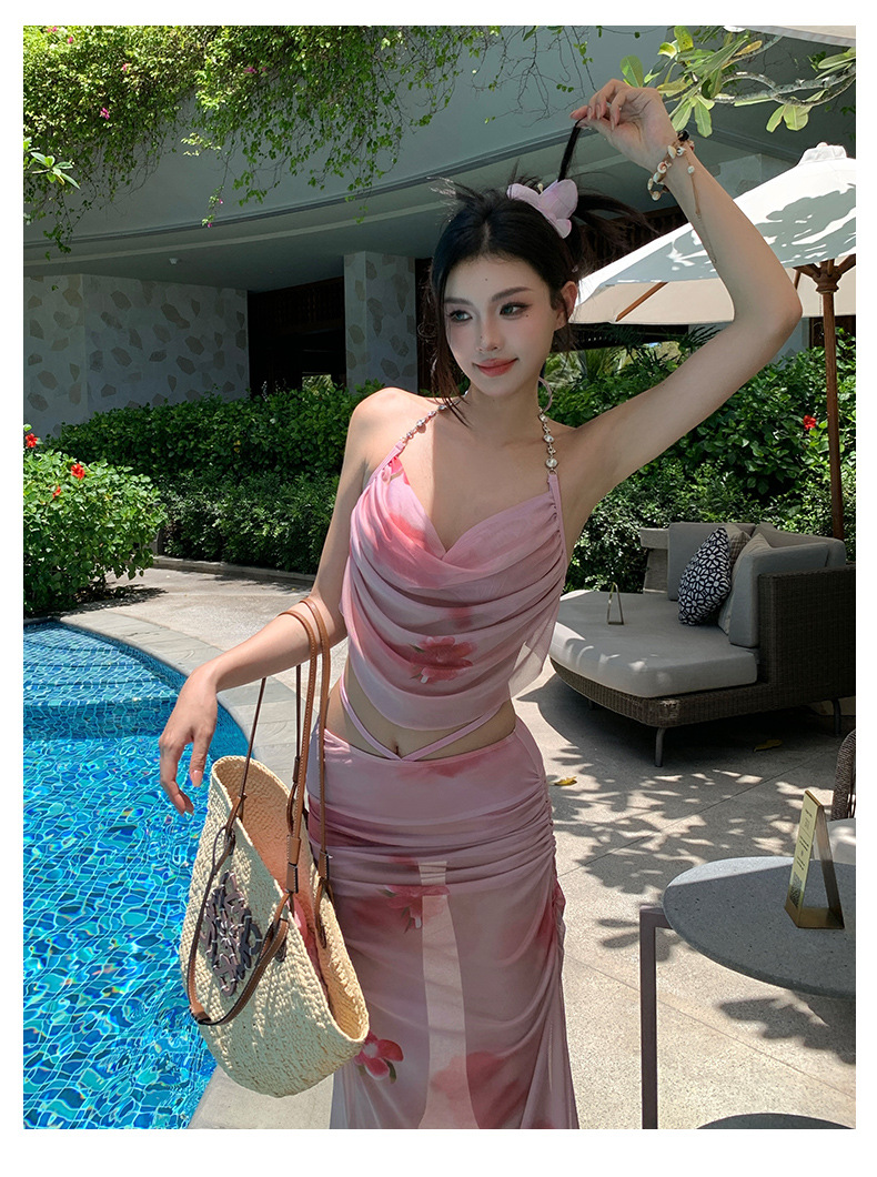 한국 비키니 수영복 여성 2025 새로운 아름다운 분할 3 피스 세트 섹시한 긴 원피스 온천 휴일 수영복스토어 가기