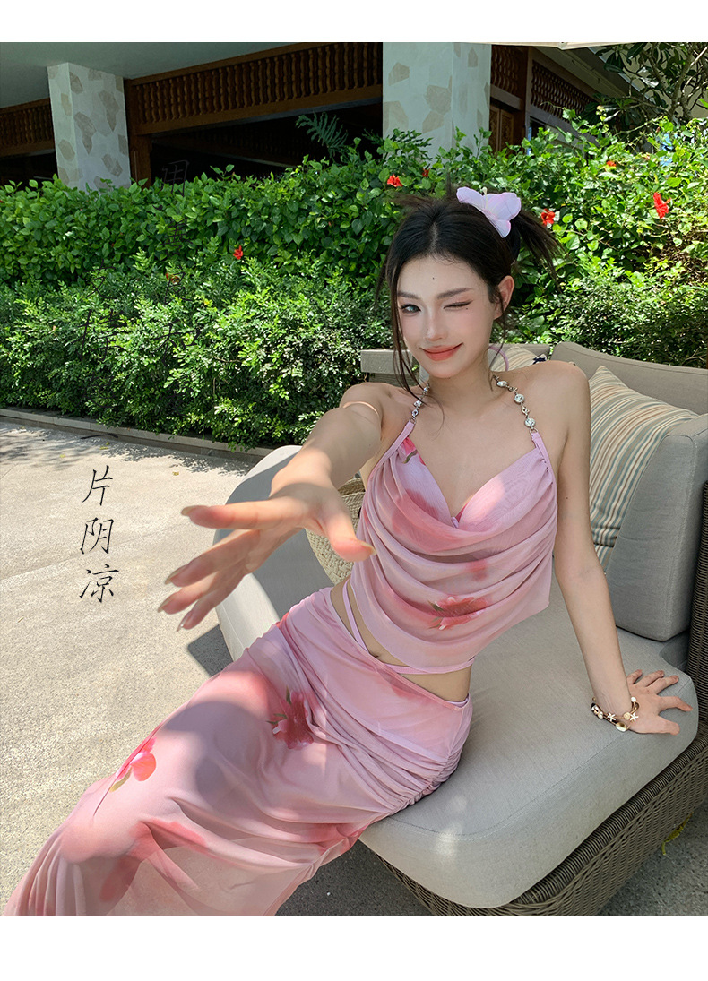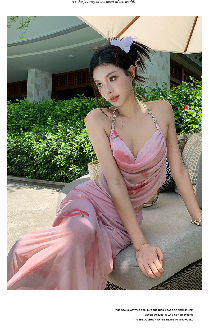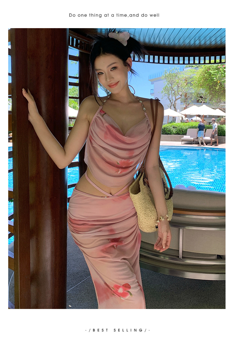 한국 비키니 수영복 여성 2025 새로운 아름다운 분할 3 피스 세트 섹시한 긴 원피스 온천 휴일 수영복