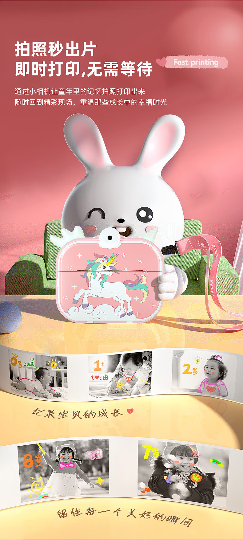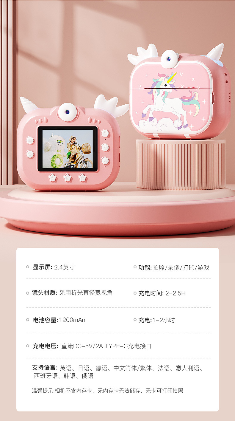 국경을 넘는 새로운 어린이 만화 교육용 즉석 카메라 고화질 인쇄 카메라 도매 휴대용 카메라스토어 가기