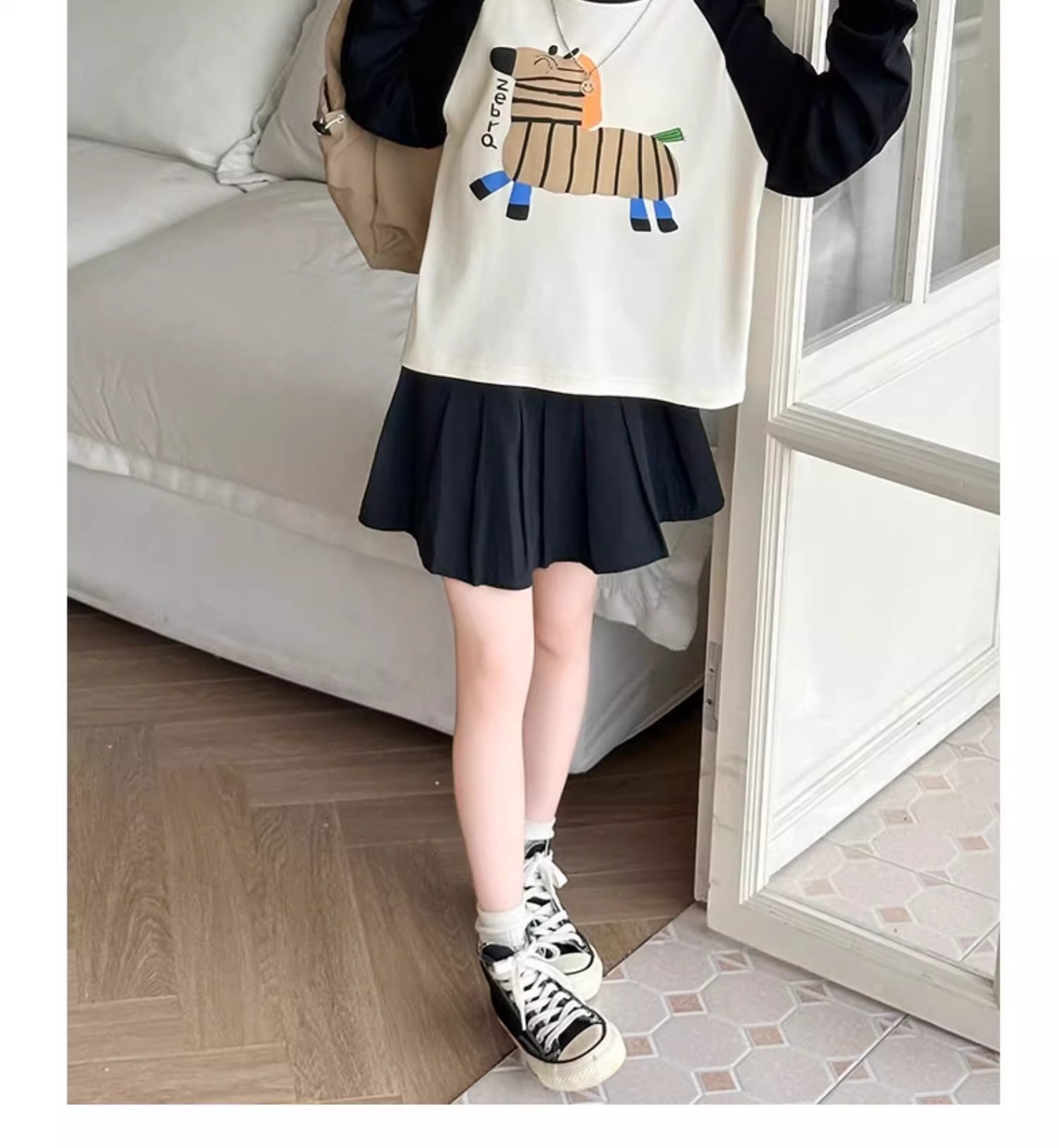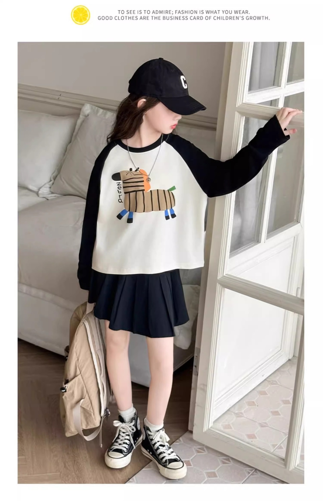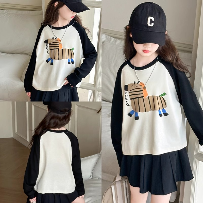 소녀 서양식 베이스 셔츠 봄과 가을 2025 새로운 어린이 긴팔 티셔츠 소녀의 큰 소년의 봄 탑스토어 가기