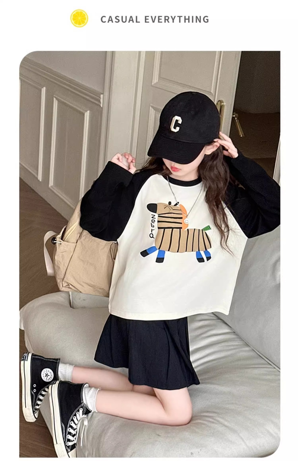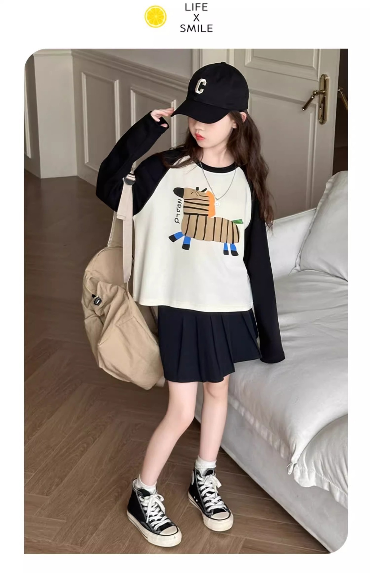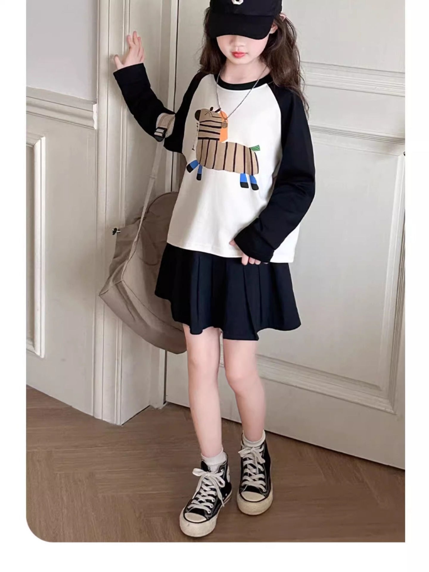 소녀 서양식 베이스 셔츠 봄과 가을 2025 새로운 어린이 긴팔 티셔츠 소녀의 큰 소년의 봄 탑스토어 가기