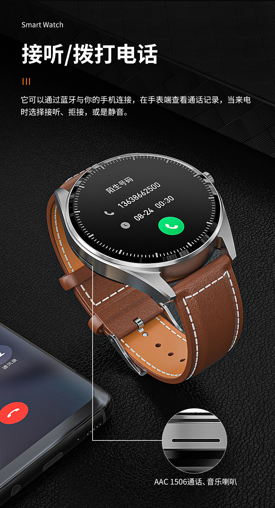 • 새로 디자인된 시계 브라운 가죽 - 초박형 바디에 무감각 이어폰 내장