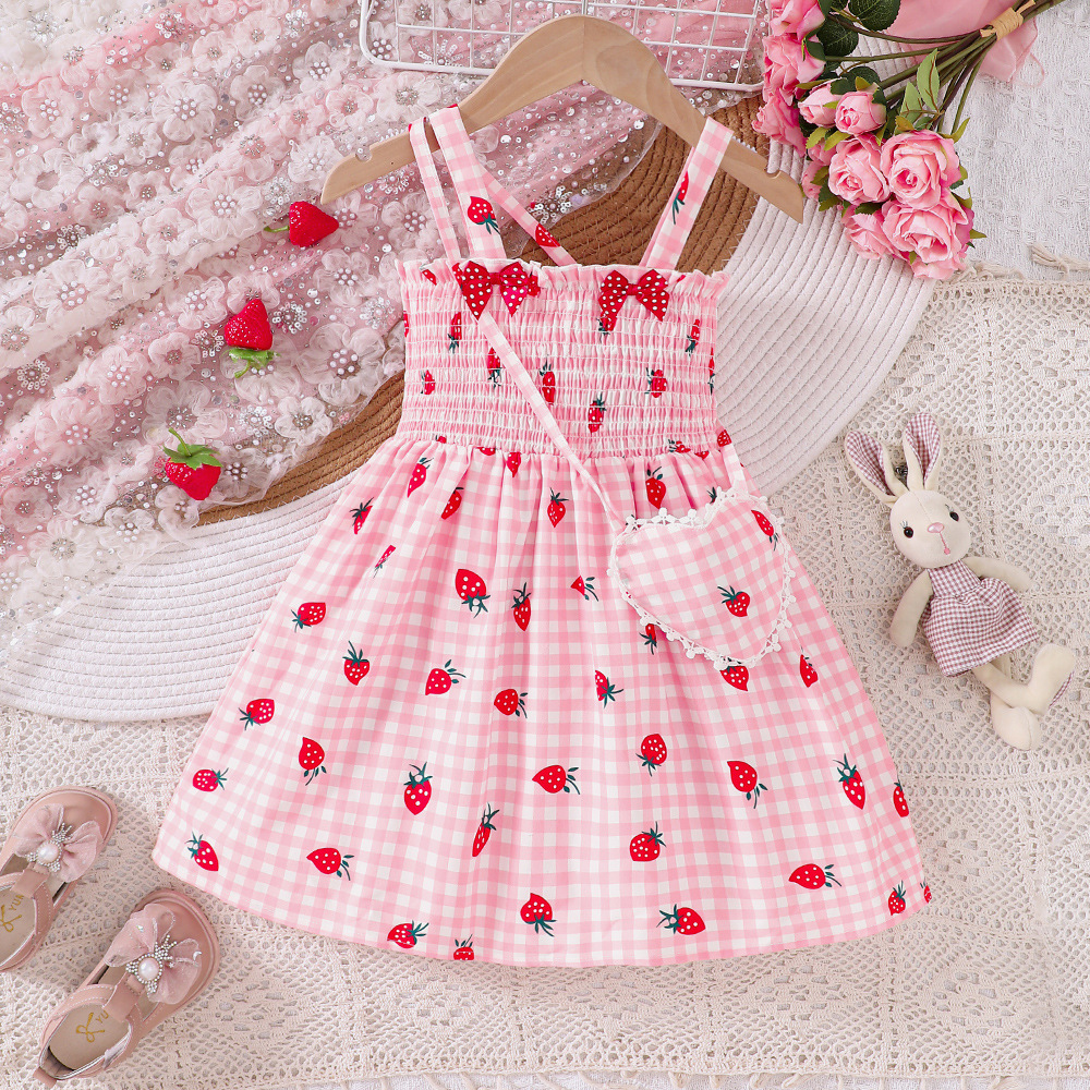 EW 대외 무역 아동복 신제품 소녀 봄 여름 서스펜더 딸기 프린트 드레스 XHQ1896