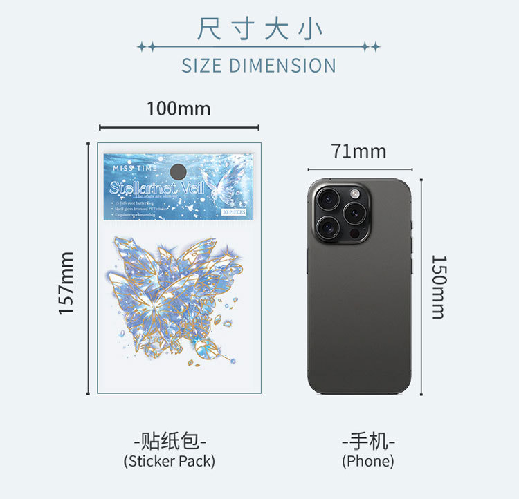 라이트 피킹 PET 쉘 라이트 브론 징 스티커 패키지 스타 맨 나비 시리즈 30 다이 컷 나비 테마 손 계정 소재
