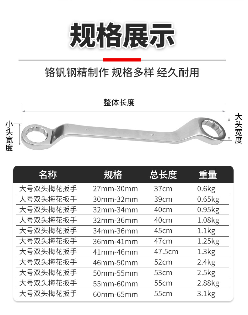 무광택 대형 Torx 렌치 32-70mm 양방향 렌치 자동 수리 Torx 렌치 이중 용도 개방형 니켈 도금스토어 가기