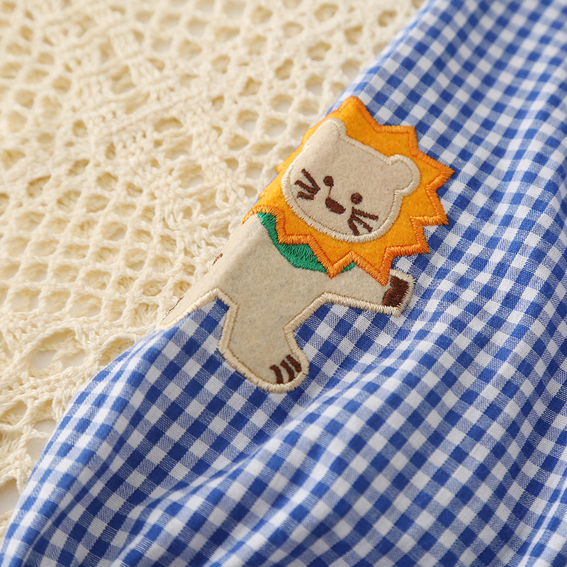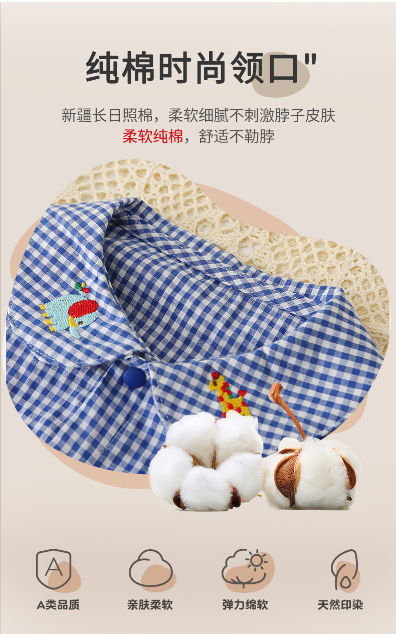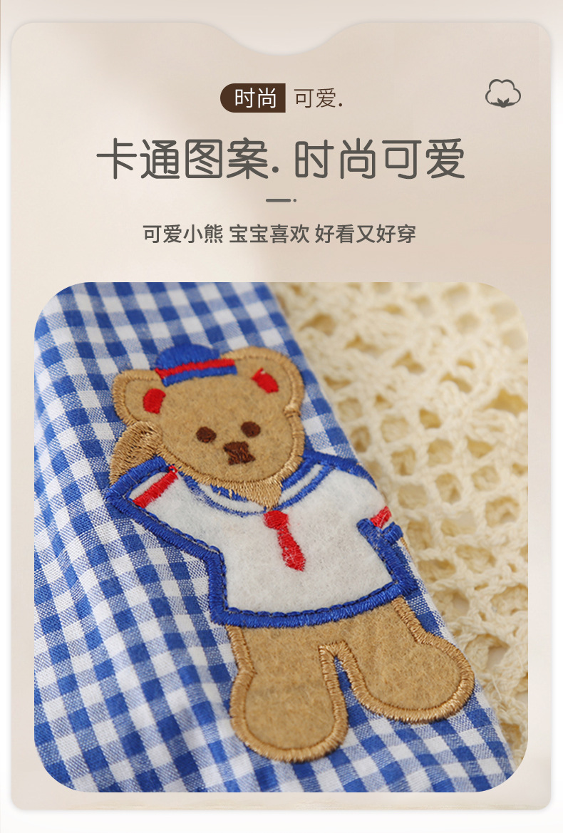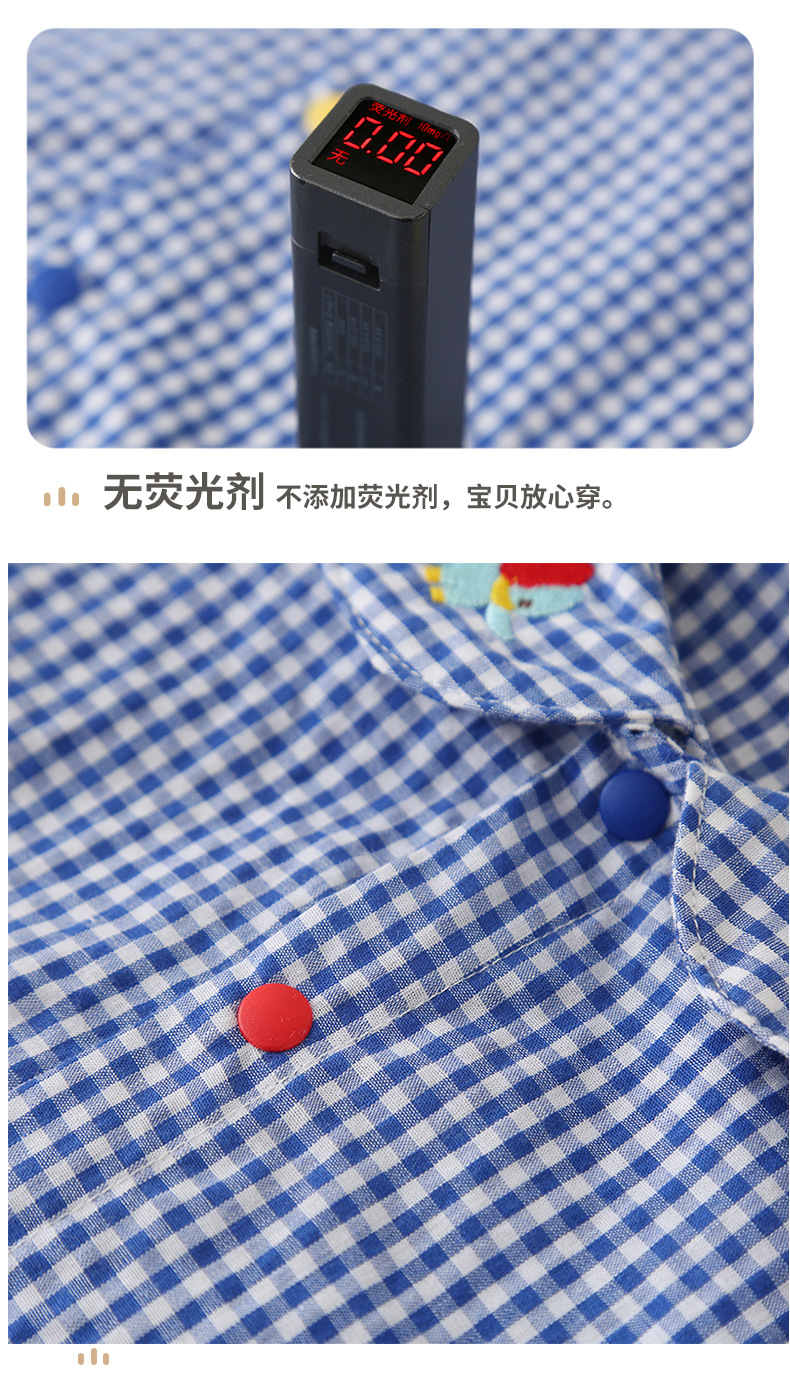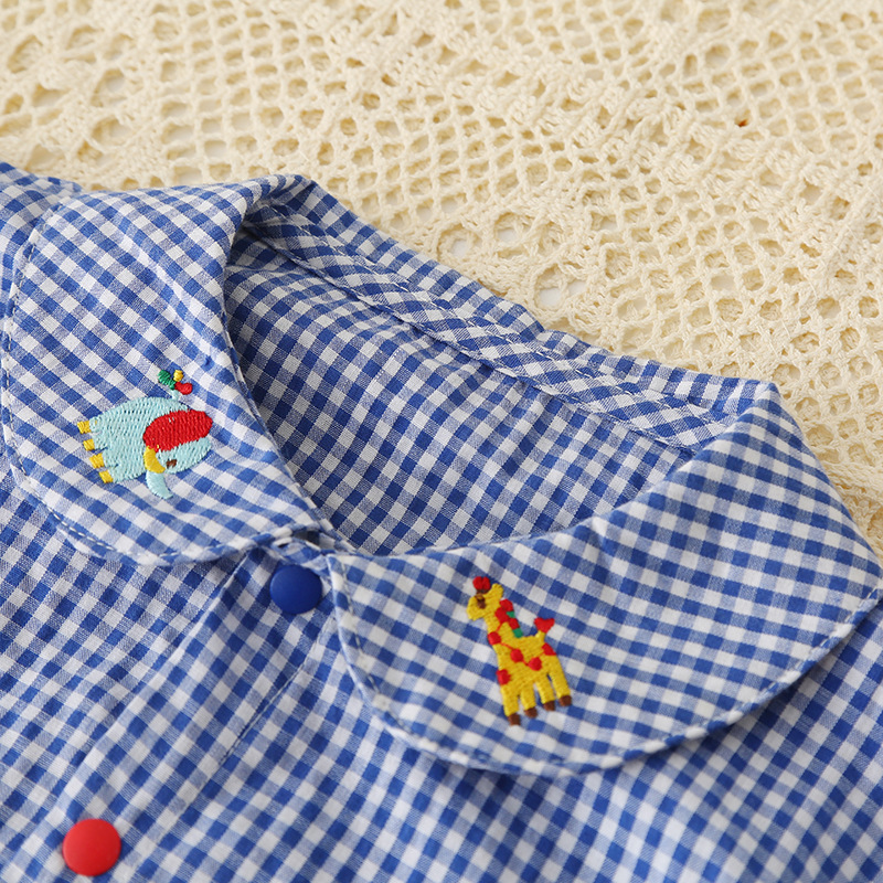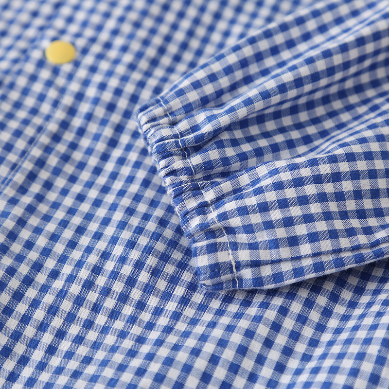 미키 아동복 봄, 가을 옷깃 셔츠 새로운 어린이 만화 곰 수 놓은 인형 칼라 격자 무늬 긴팔 셔츠스토어 가기