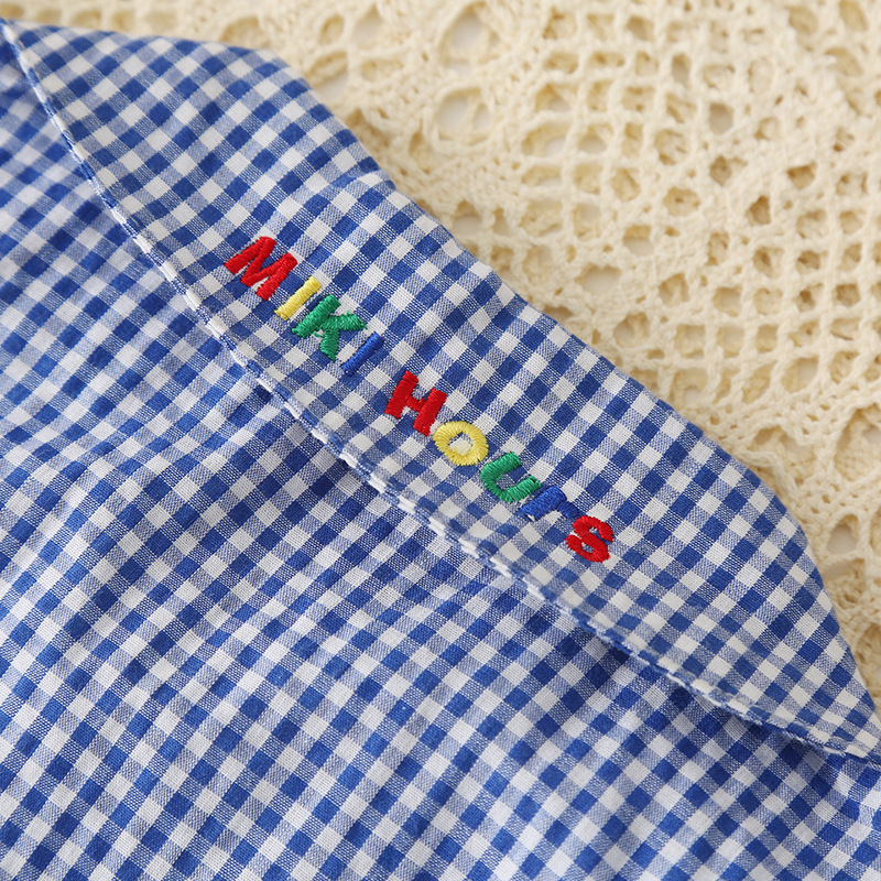 미키 아동복 봄, 가을 옷깃 셔츠 새로운 어린이 만화 곰 수 놓은 인형 칼라 격자 무늬 긴팔 셔츠
