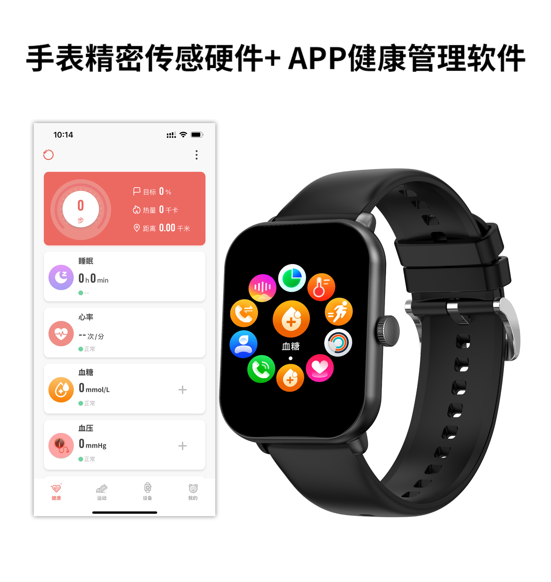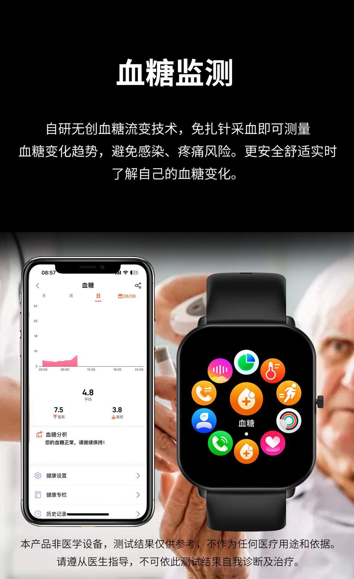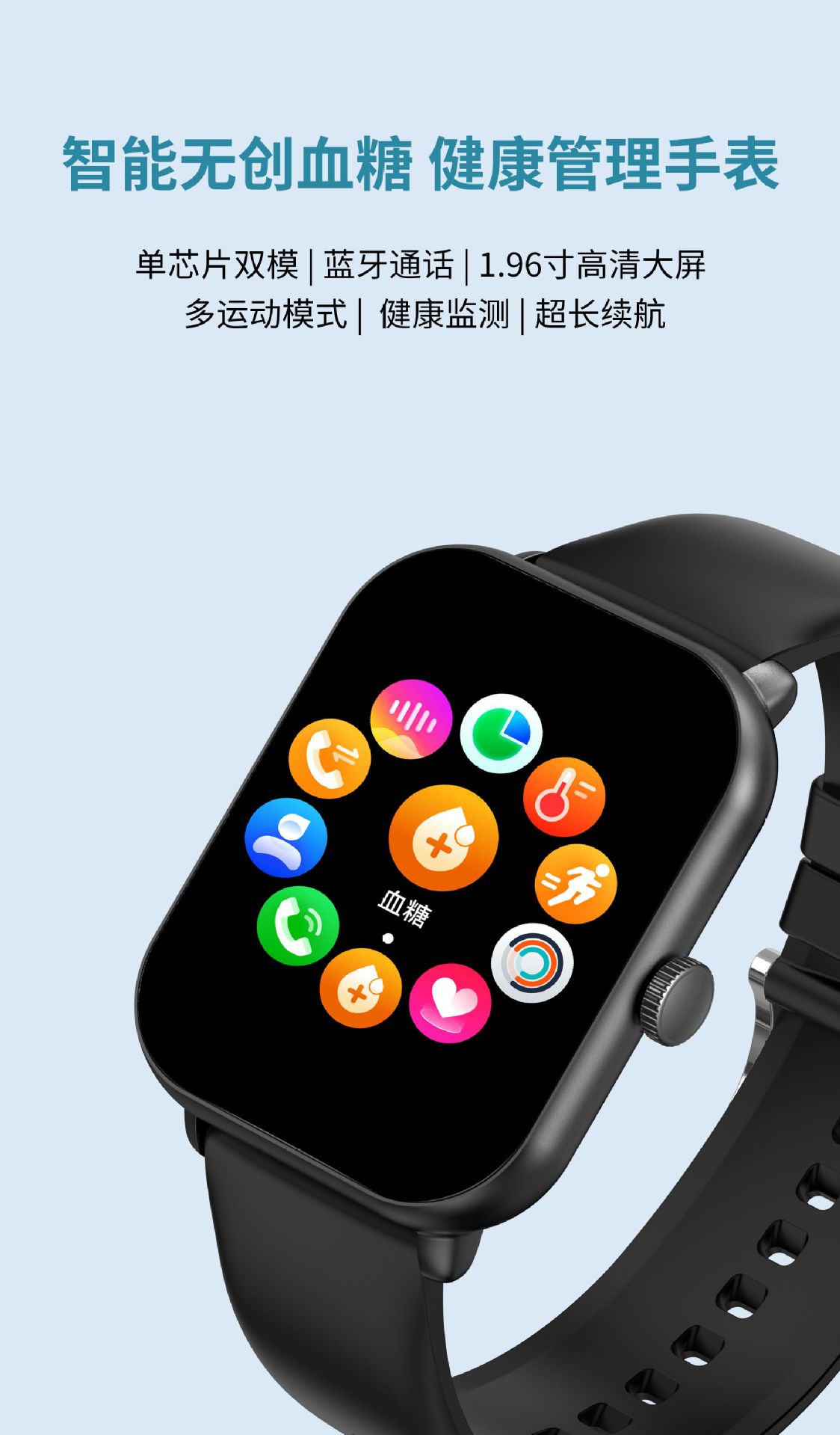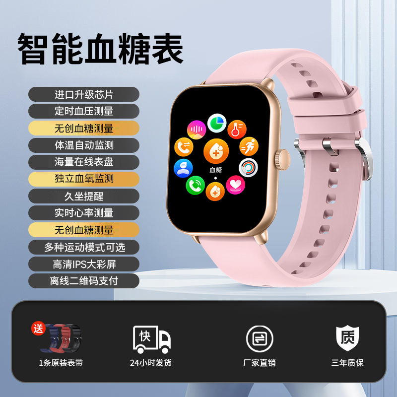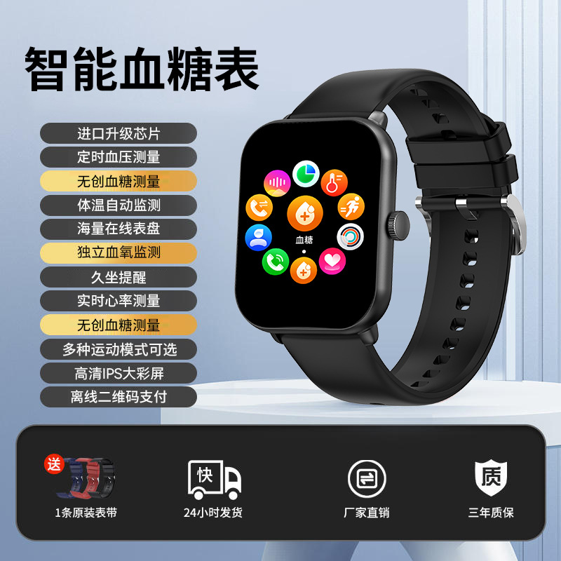 무료 비침습적 혈당 모니터링 혈압 혈액 산소 심박수 스마트 온도계 스마트 컬러 스크린 팔찌 혈당 시계