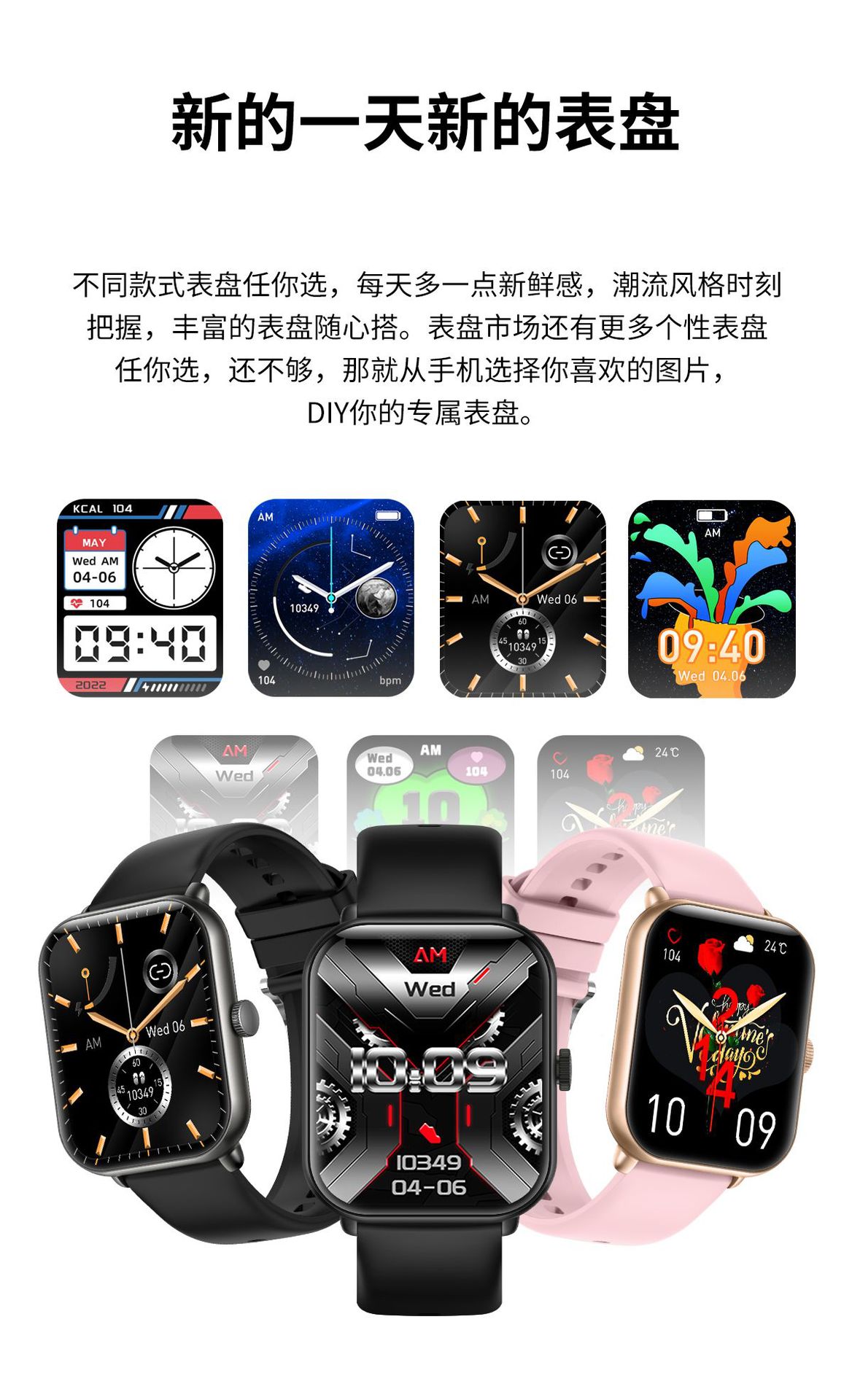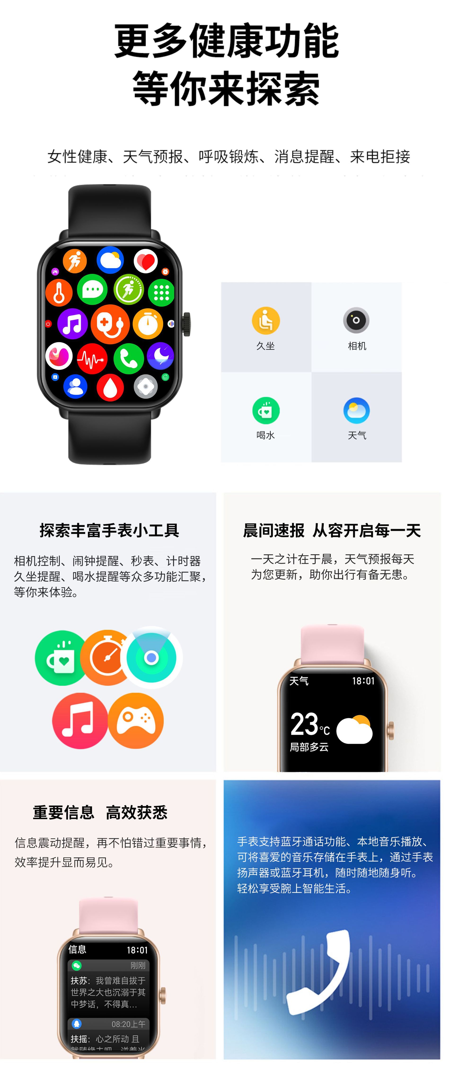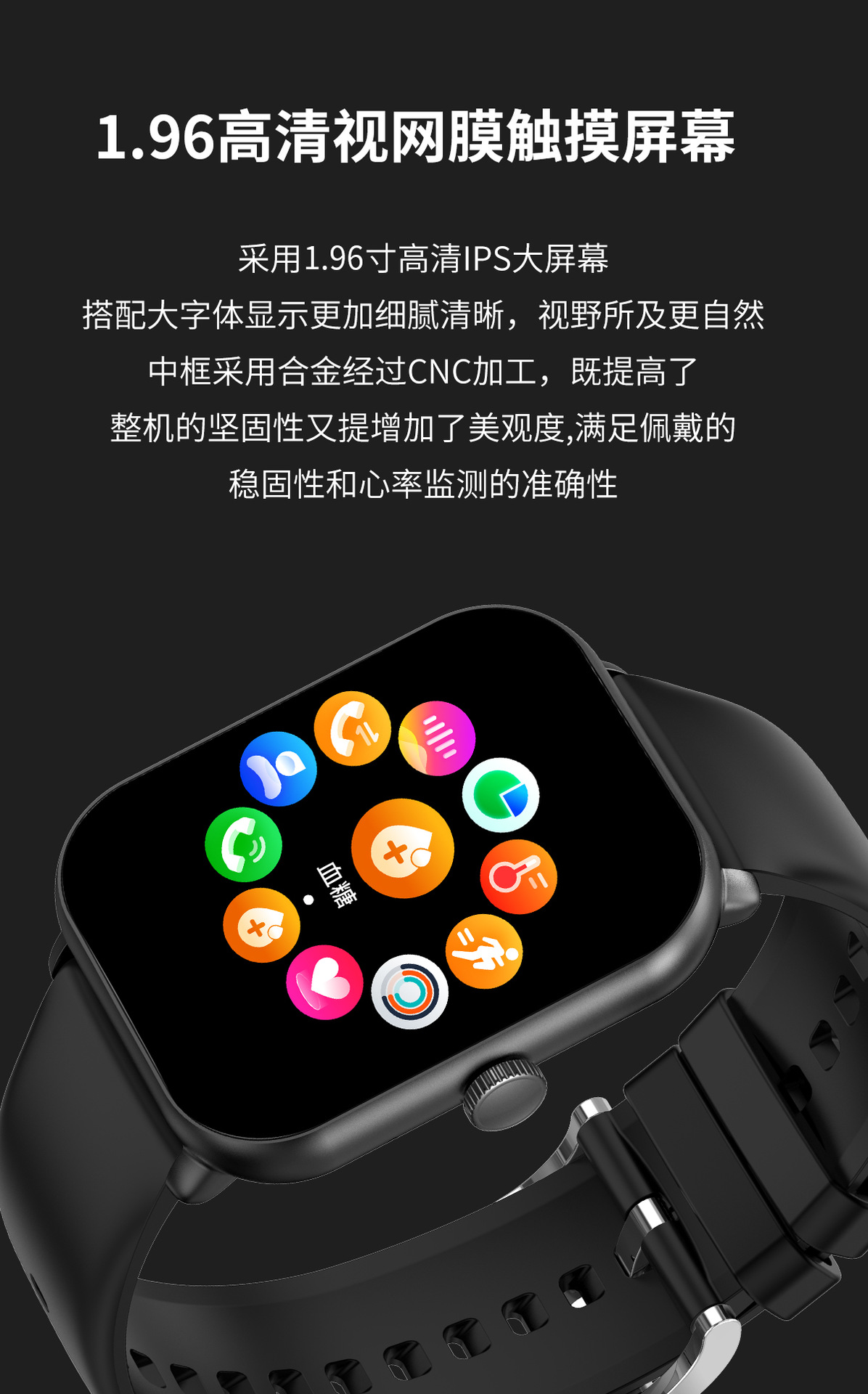 무료 비침습적 혈당 모니터링 혈압 혈액 산소 심박수 스마트 온도계 스마트 컬러 스크린 팔찌 혈당 시계