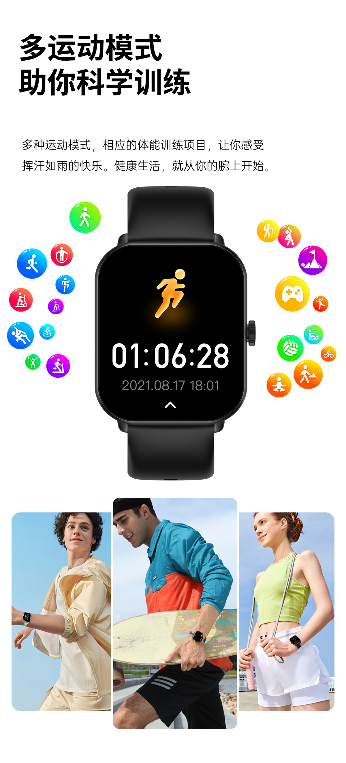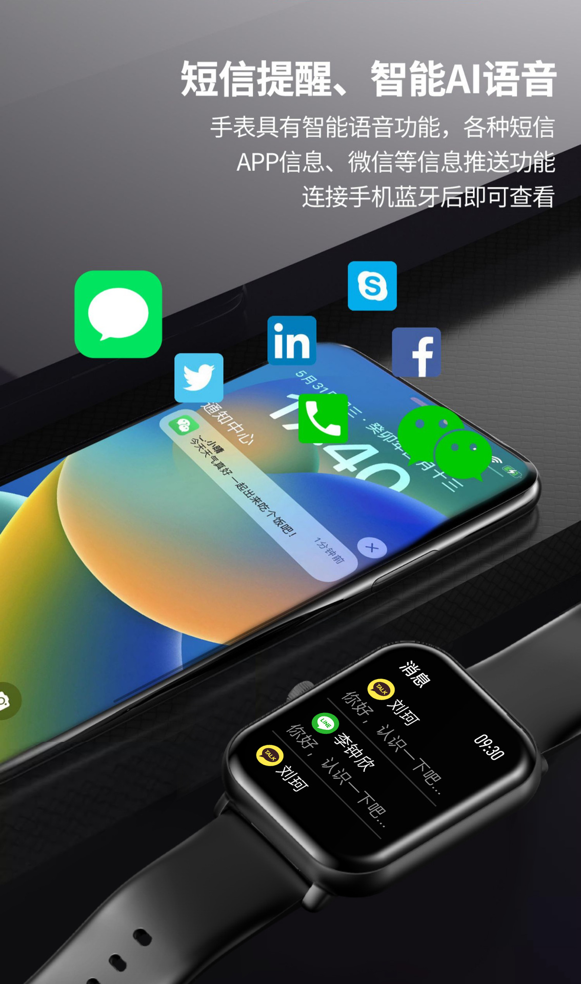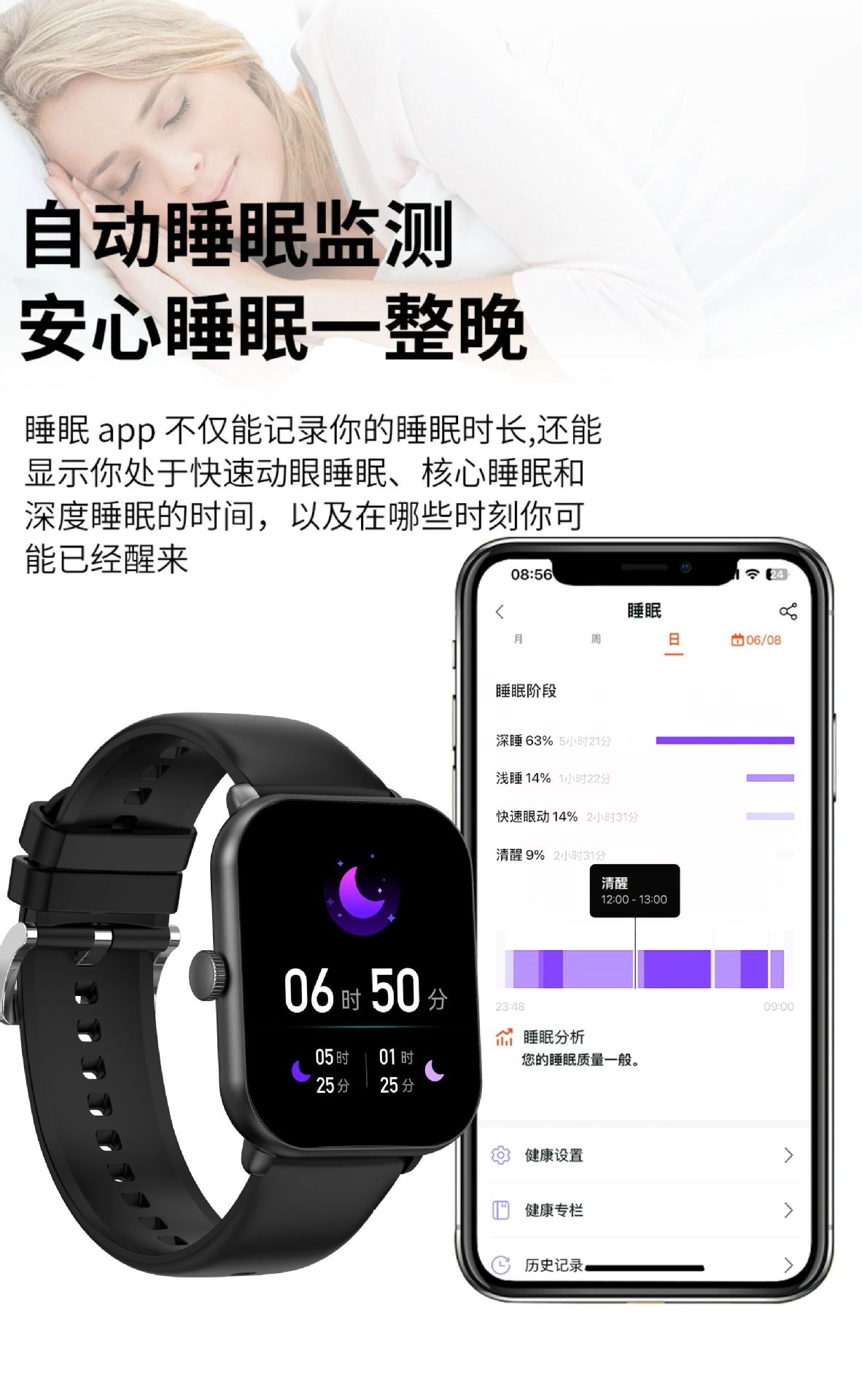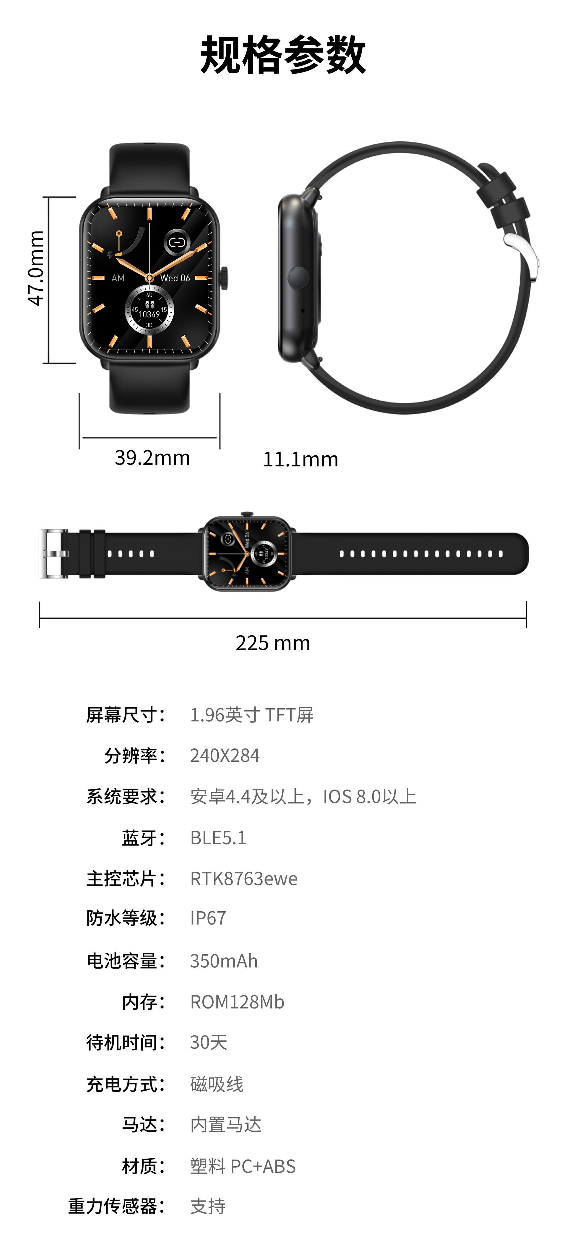무료 비침습적 혈당 모니터링 혈압 혈액 산소 심박수 스마트 온도계 스마트 컬러 스크린 팔찌 혈당 시계